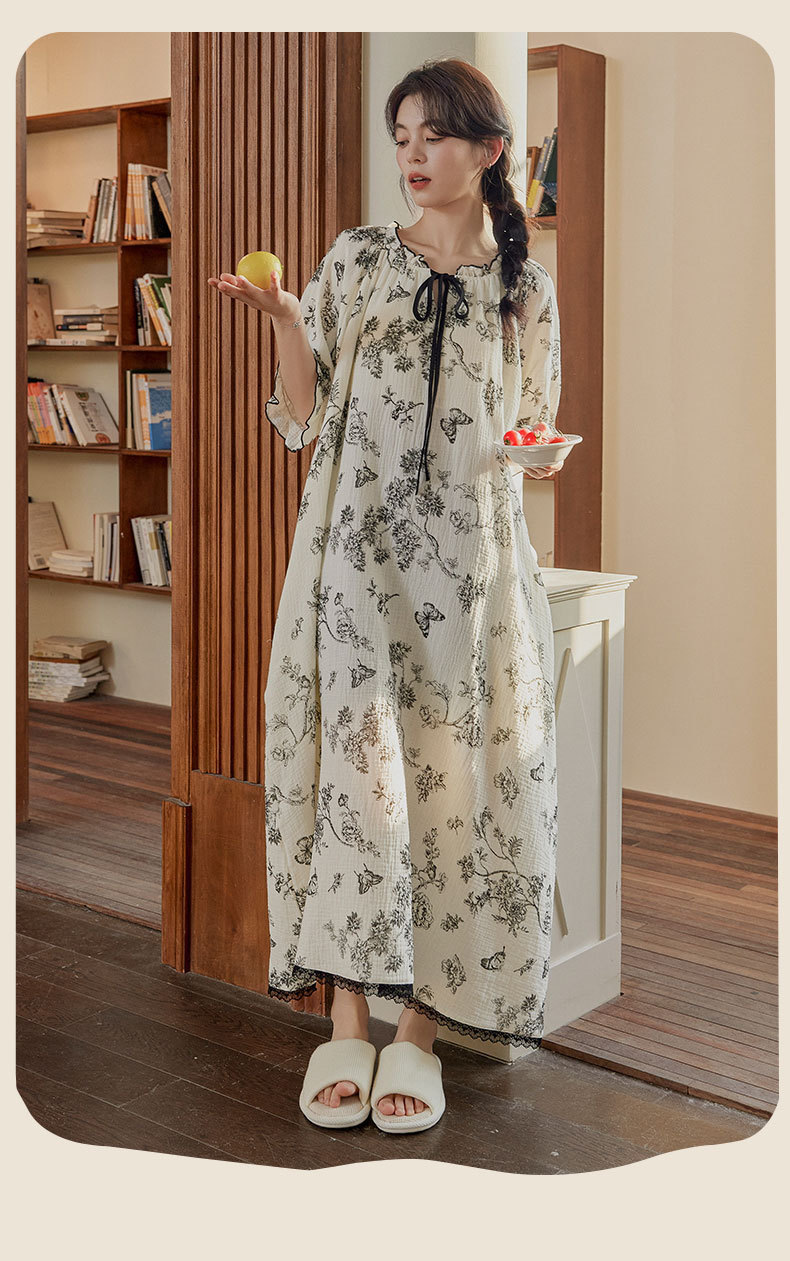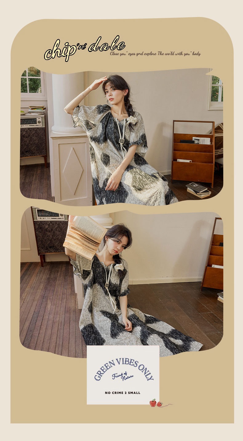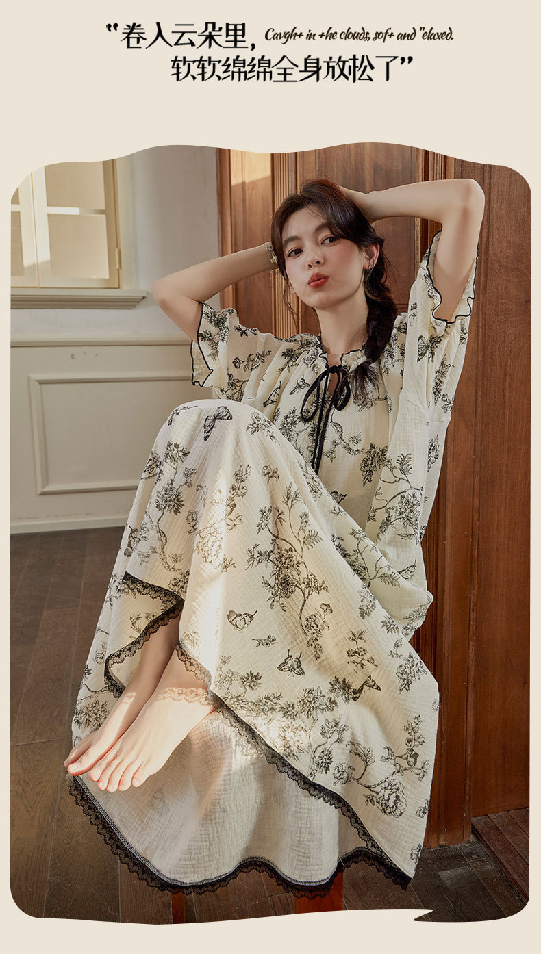 가슴 패드가 있는 여성용 여름 얇은 기모노 스타일 잠옷, 달콤한 반팔 루즈핏 롱 원피스, 외출복으로도 착용 가능, 무인쇄스토어 가기