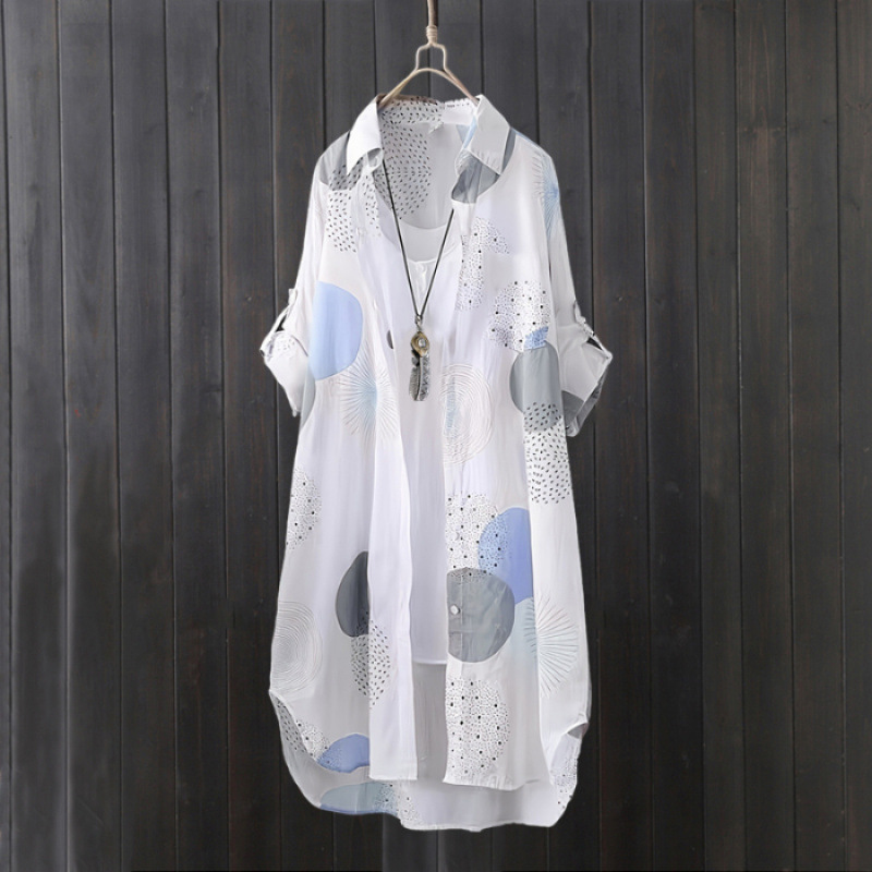 국경 간 대외 무역 선스크린 셔츠 여성의 여름 중간 길이 최고 느슨한 플러스 사이즈 얇은 재킷 인쇄 셔츠 디자인 감각