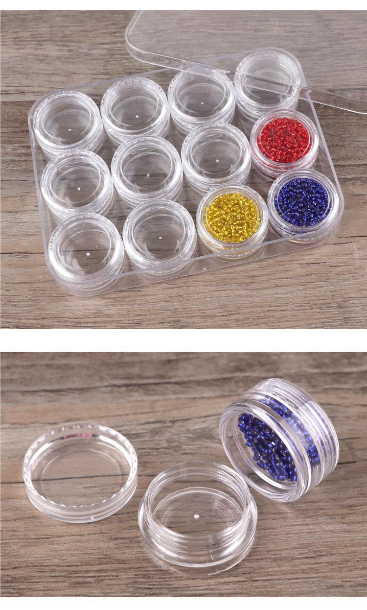 12 개의 작은 둥근 상자가있는 직사각형 플라스틱 투명 포인트 드릴 박스 액세서리스토어 가기