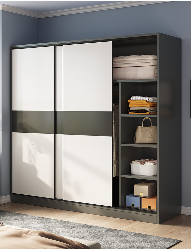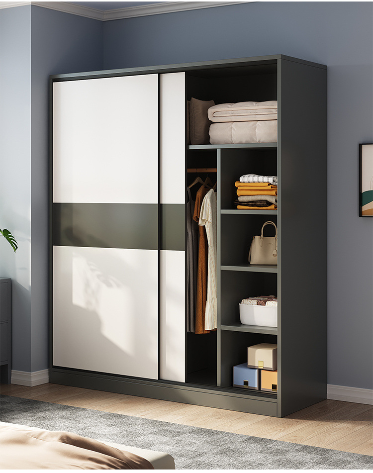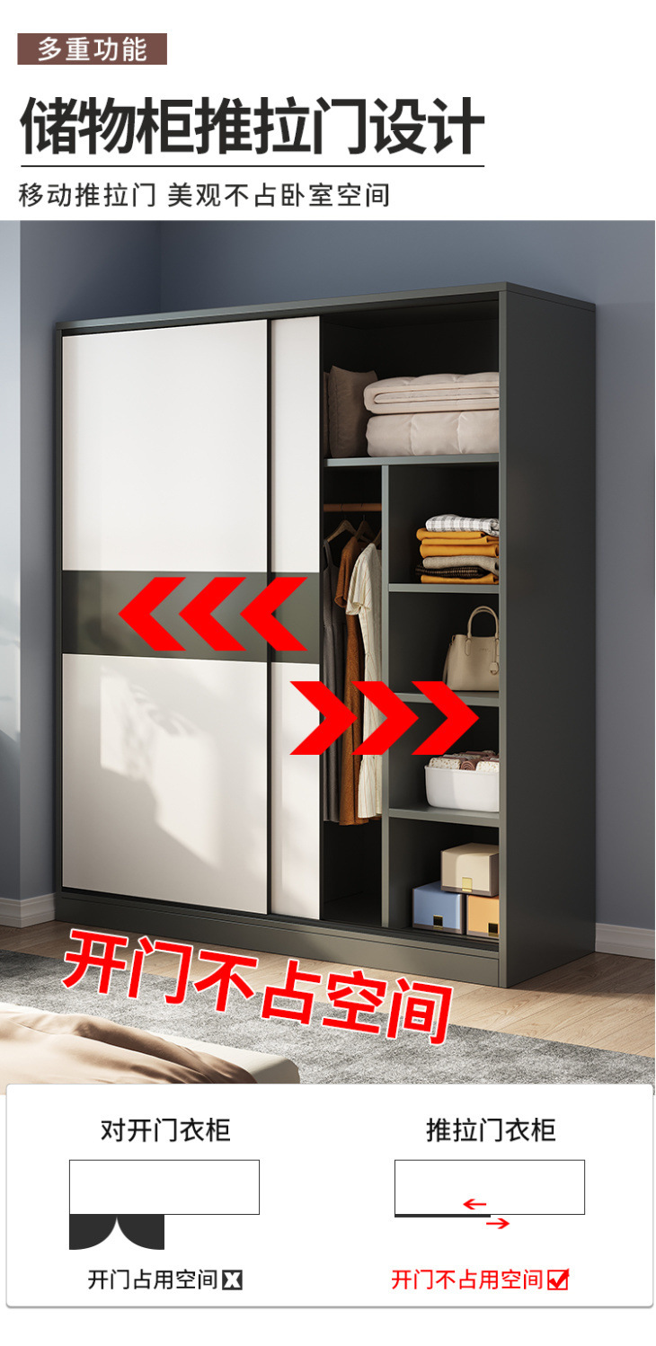 MZ 어린이 대형 옷장 옷장 홈 침실 솔리드 우드 렌탈 룸 작은 아파트 슬라이딩 도어가있는 경제적 인 기숙사
