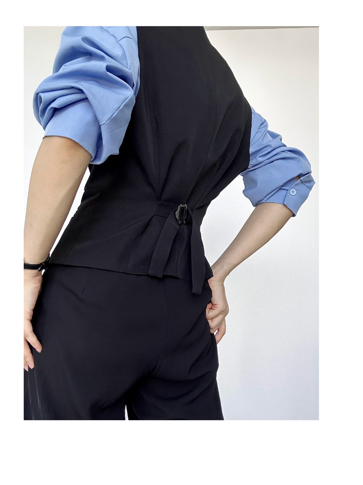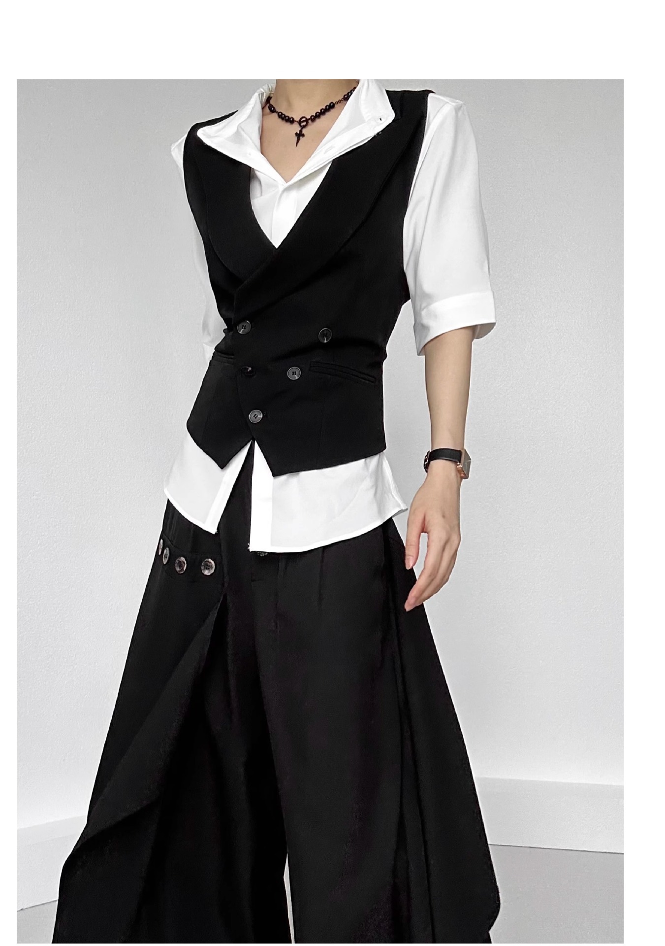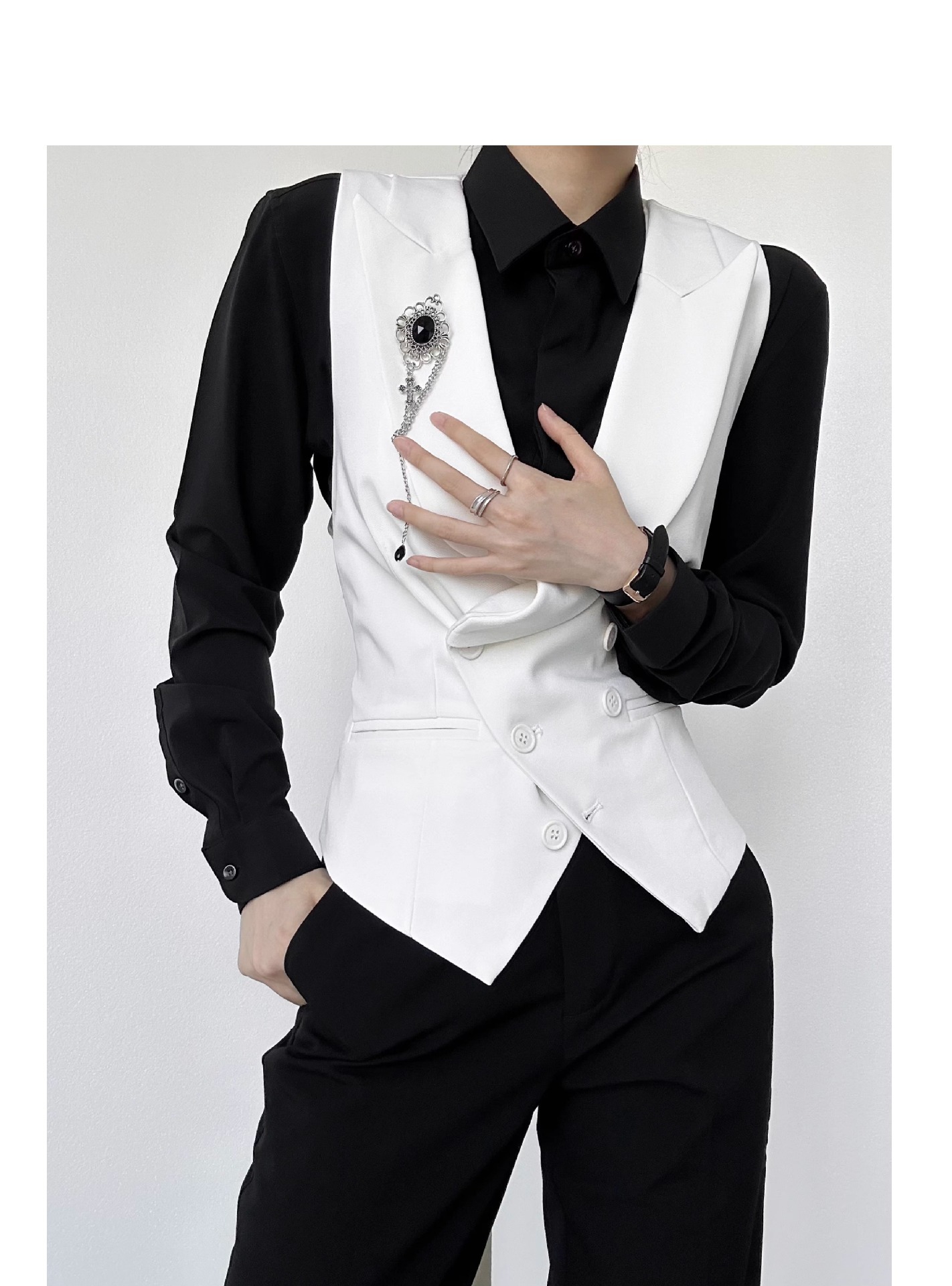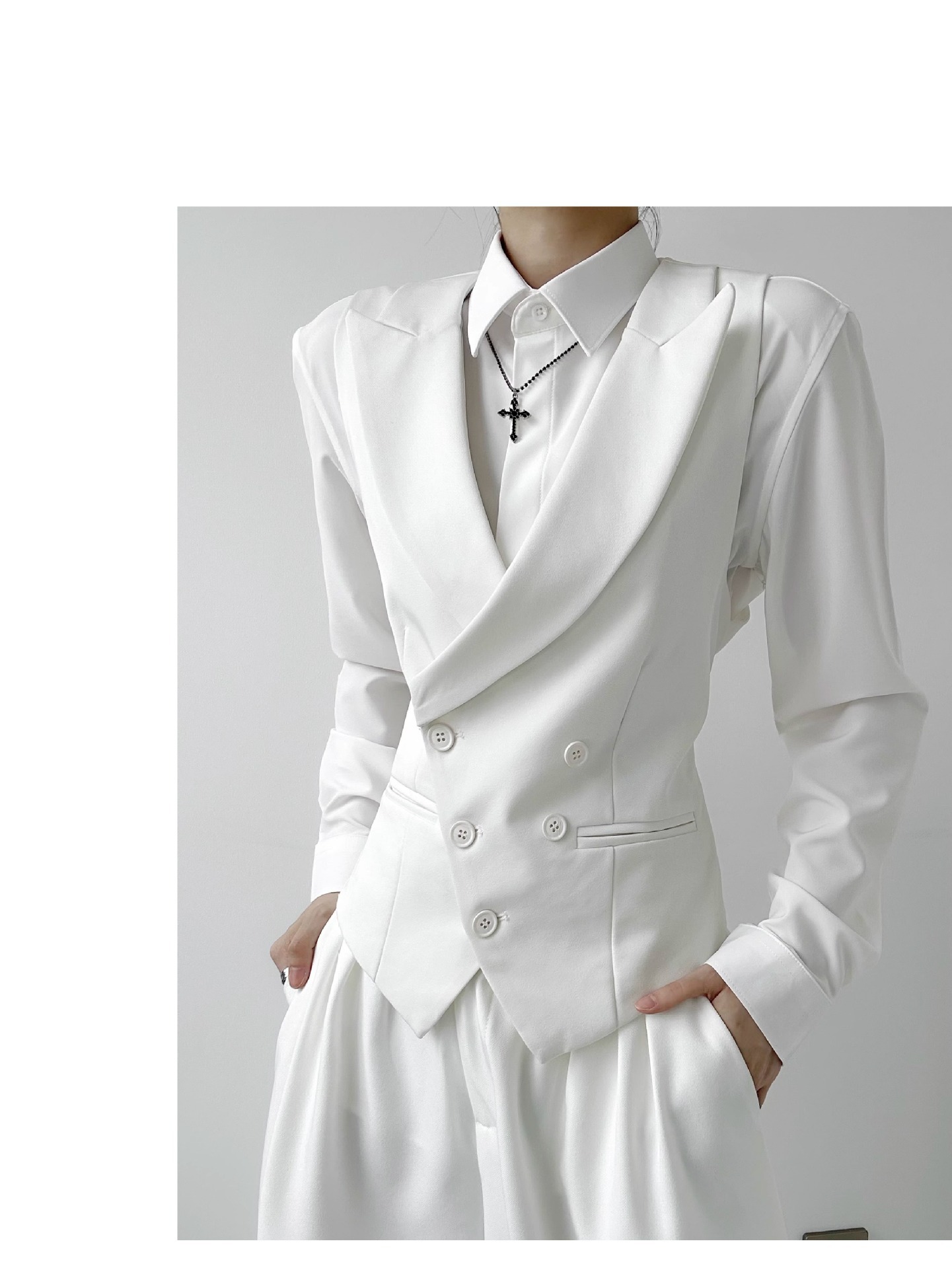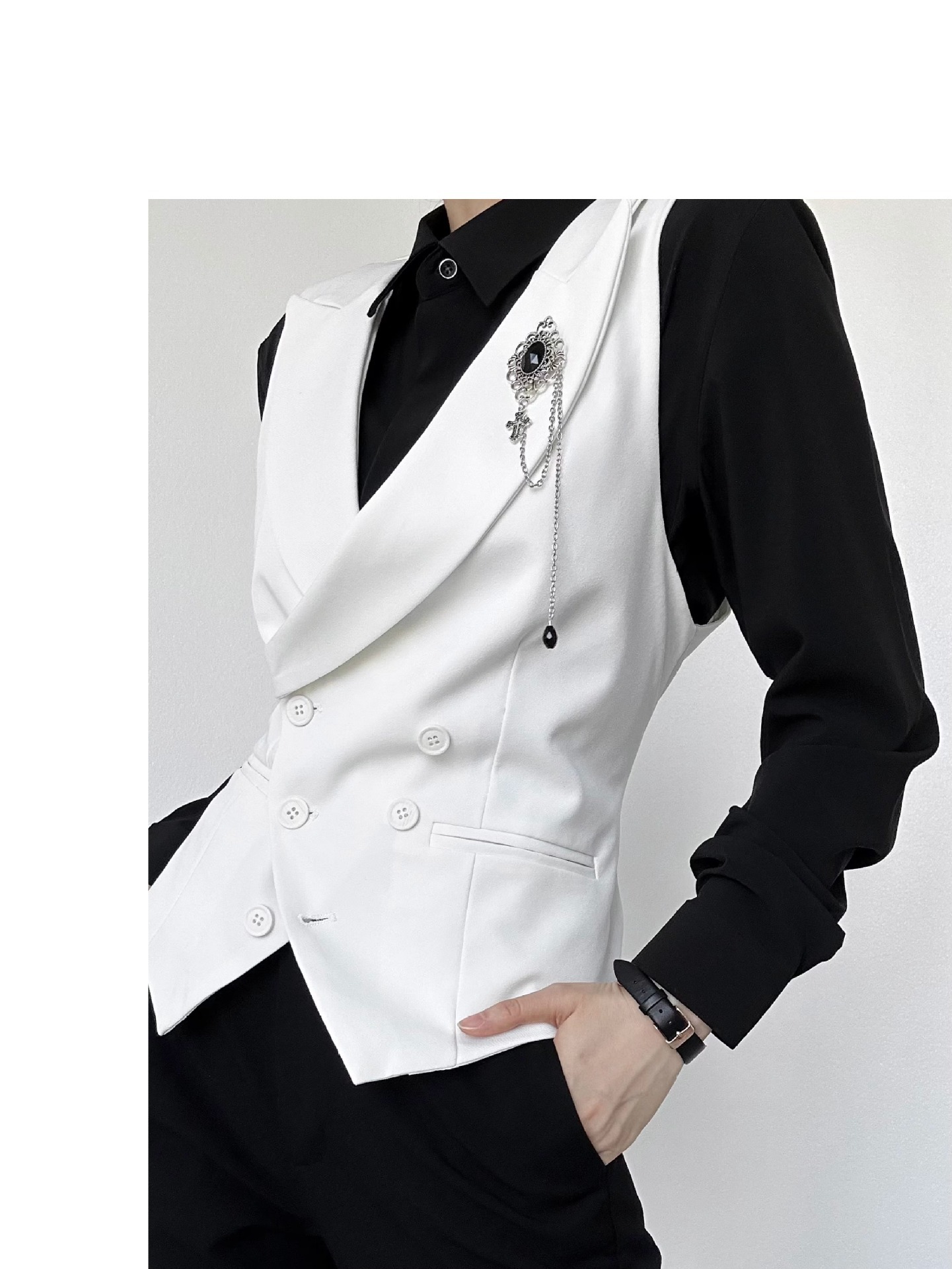 남성과 여성의 캐주얼 세트 바지선 칼라 비즈니스 조끼 영국 스타일 하이 레벨 건 바지선 칼라 슬림-핏 조끼 조끼 재킷