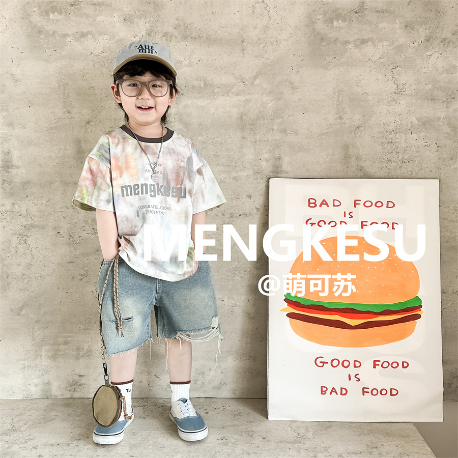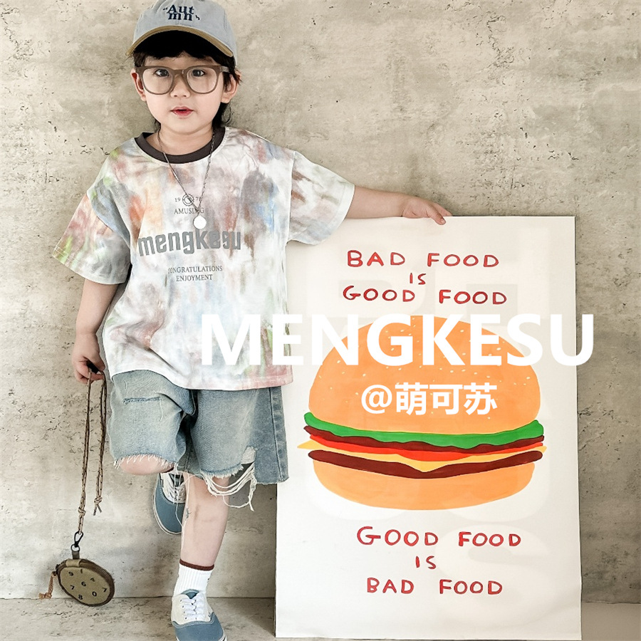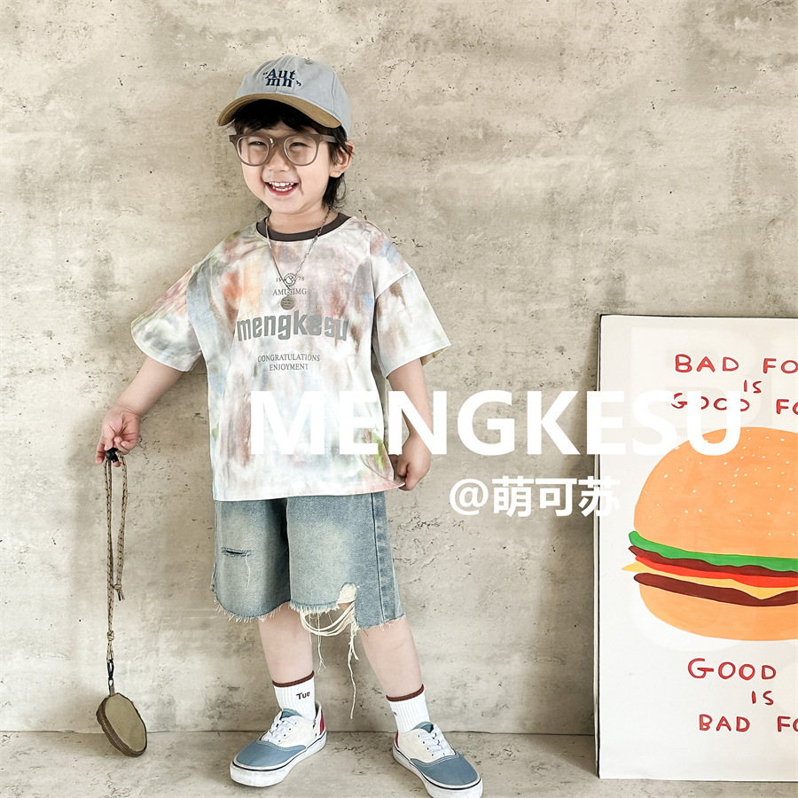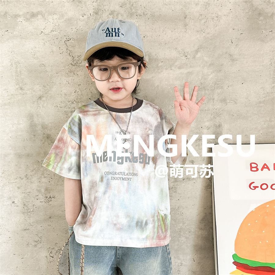Moe Su 아동복 아동복 티셔츠 새 반팔 소년 프라이드 스트리트 여름 탑 소년의 반소매 티셔츠스토어 가기