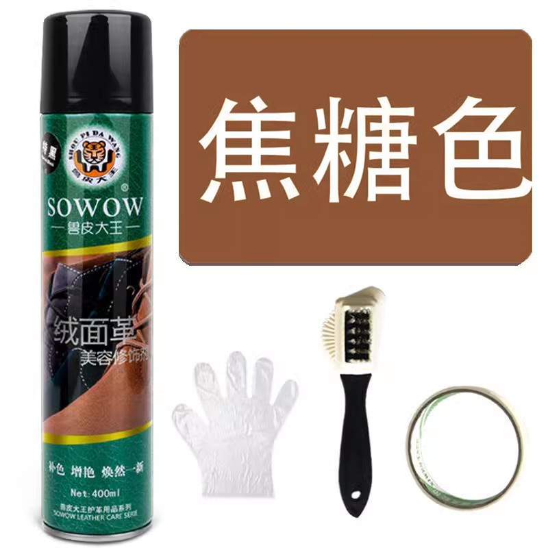 • 캐러멜 컬러 대형 스프레이 병 + 무료 스웨이드 브러쉬 + 무료 질감의 종이 + 무료 장갑
