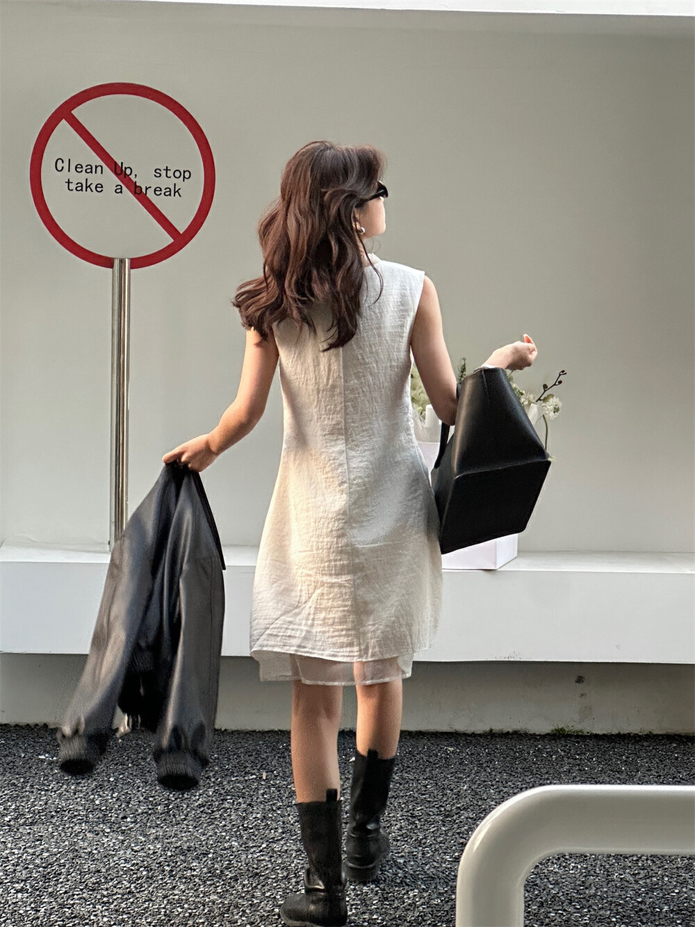 재고정리 무반품 레몬그린티 봄여름 신상 메쉬 스티치 사이드지퍼 브이넥 민소매 원피스 여성 A라인 스커트스토어 가기