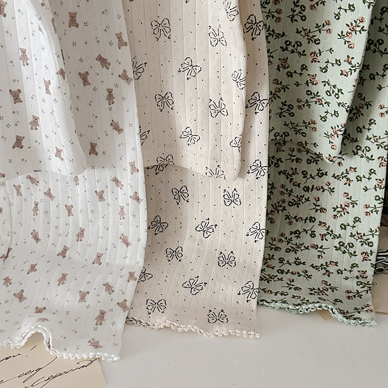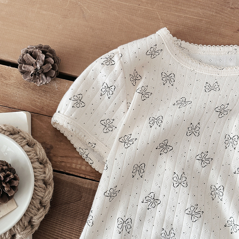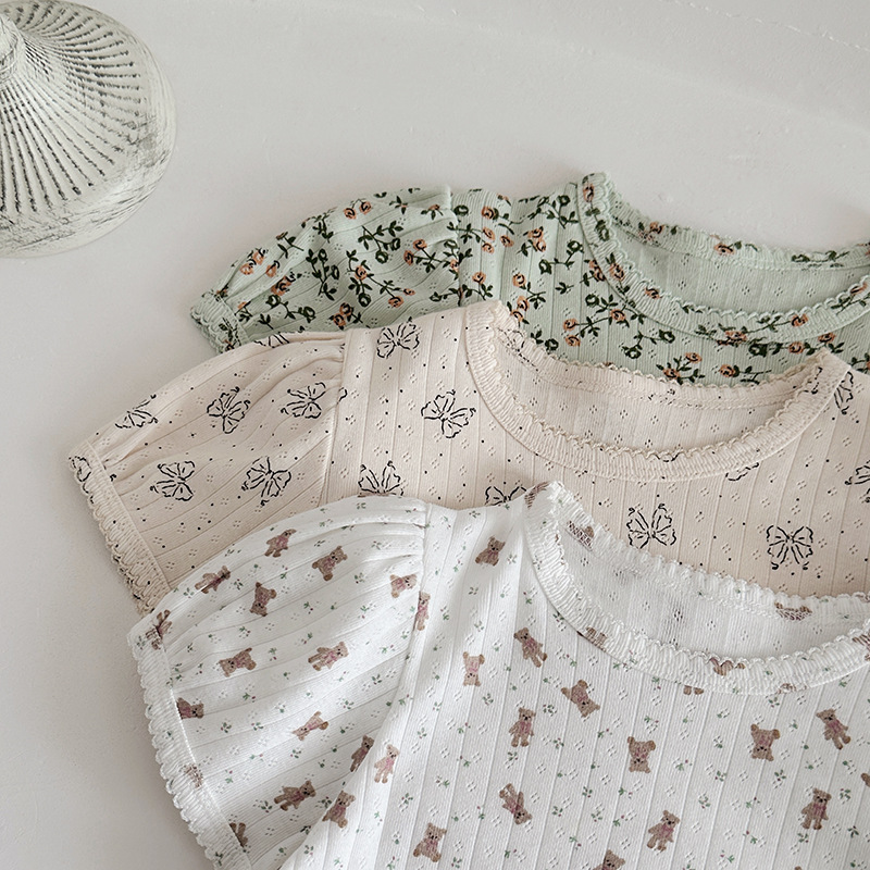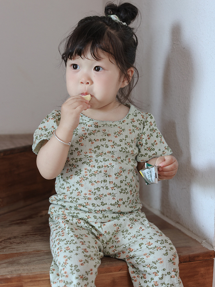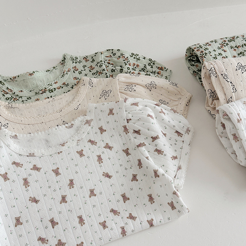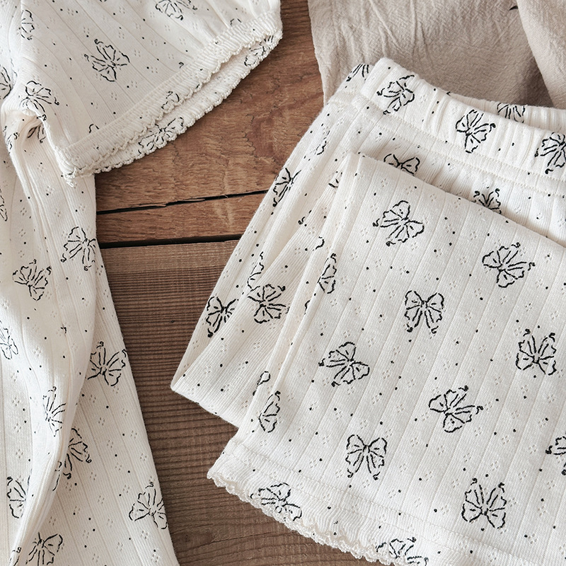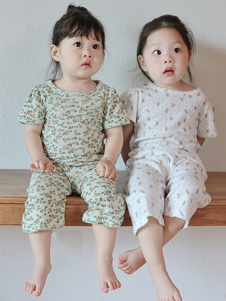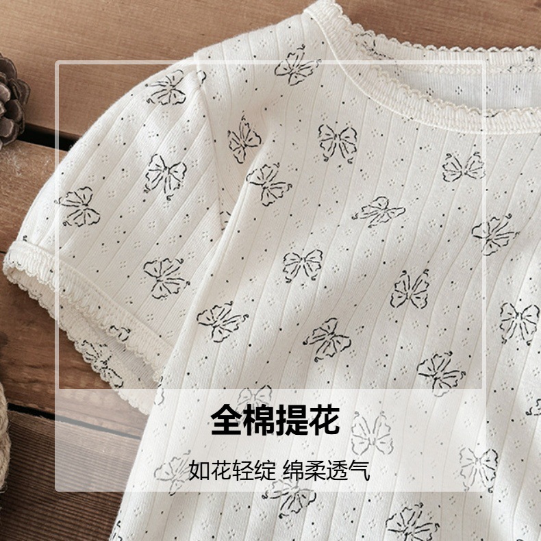 2025 년 소녀의 여름 홈 의류 세트 어린이 서양식 버블 슬리브 느슨한 편안한 소녀 잠옷 에어컨 옷스토어 가기