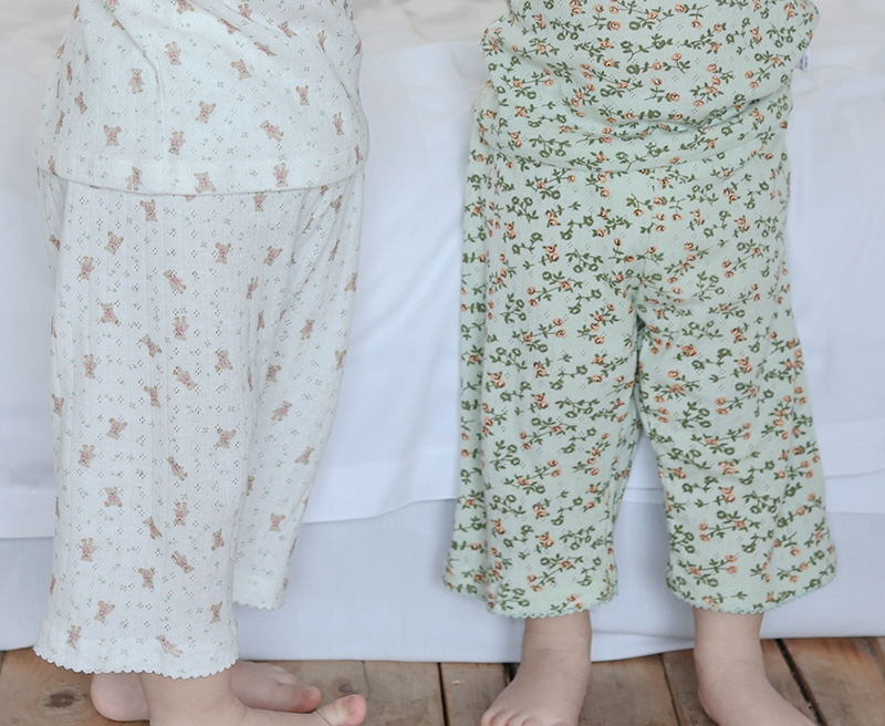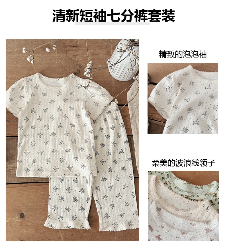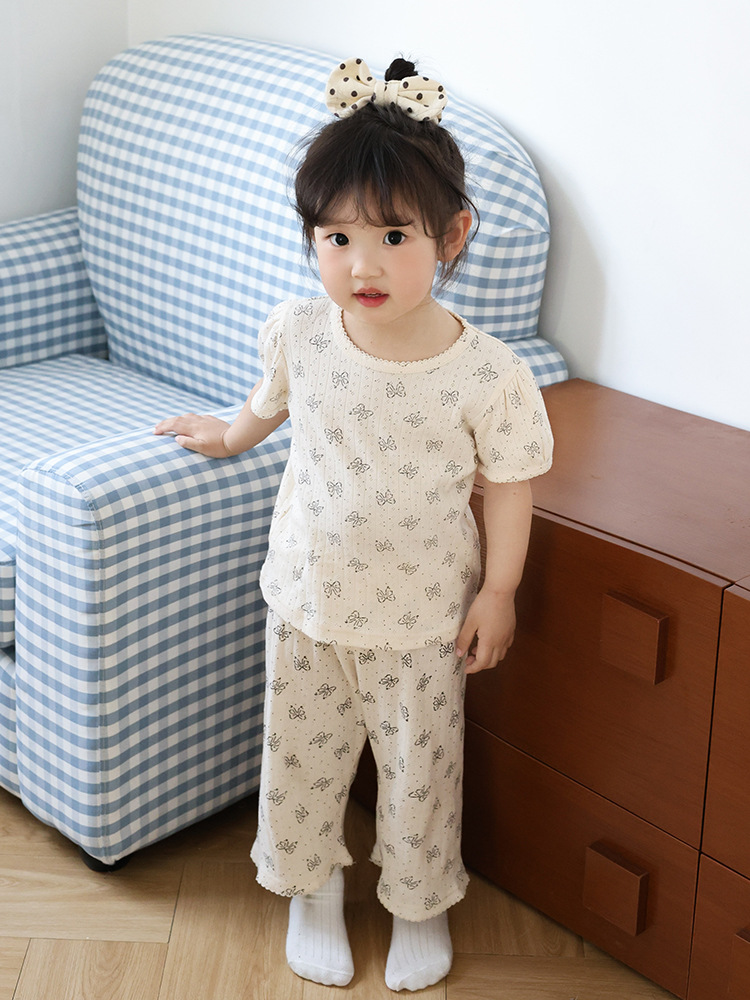 2025 년 소녀의 여름 홈 의류 세트 어린이 서양식 버블 슬리브 느슨한 편안한 소녀 잠옷 에어컨 옷
