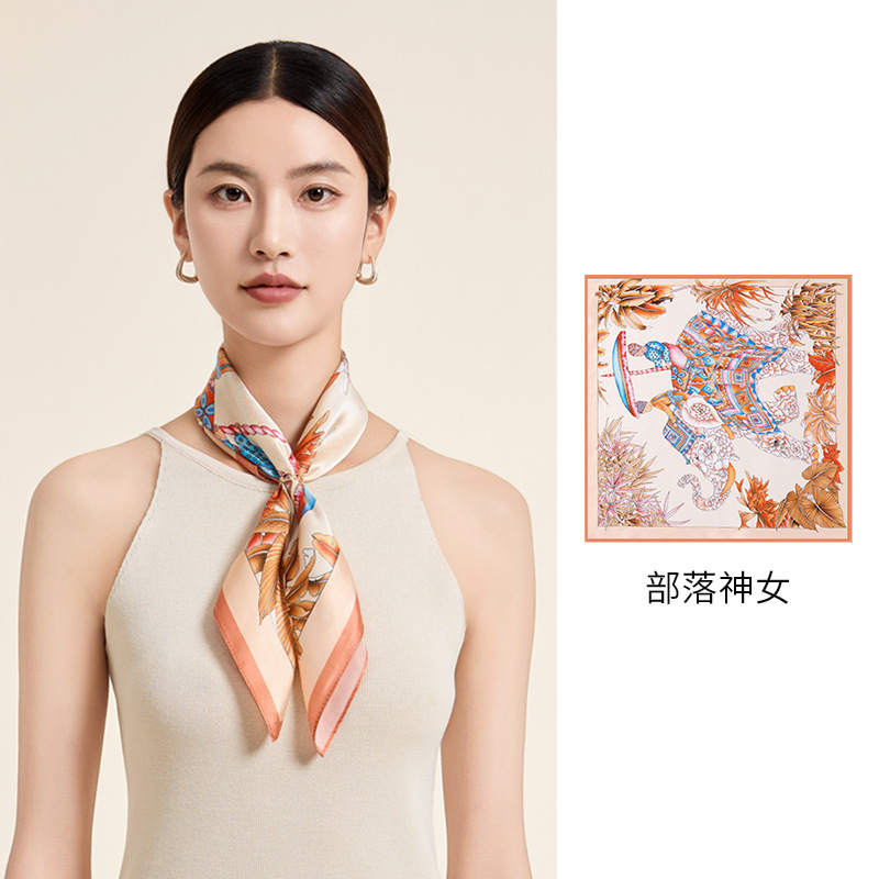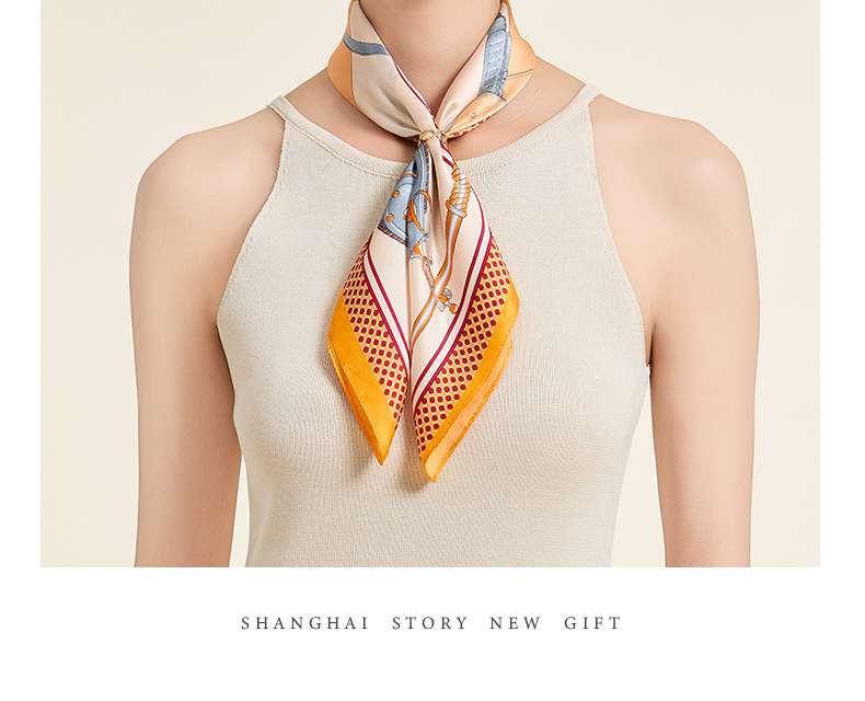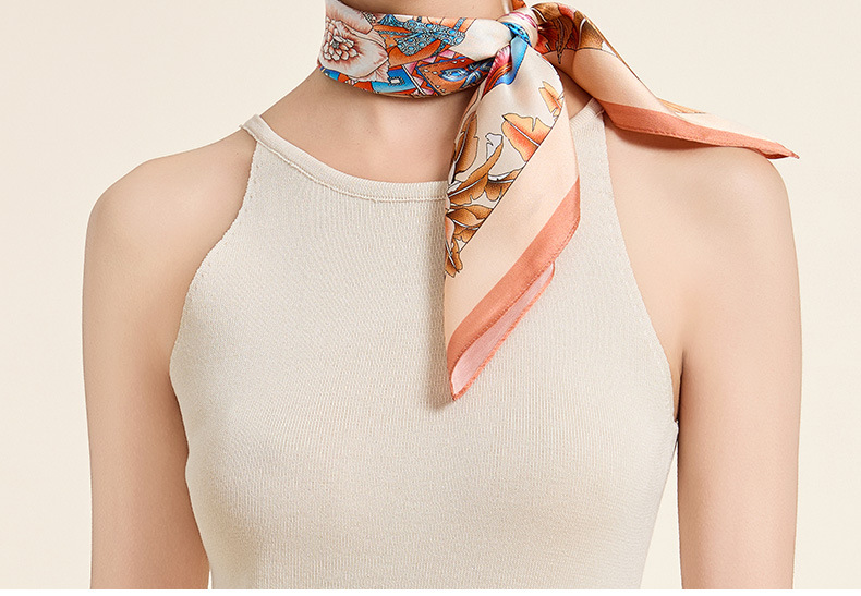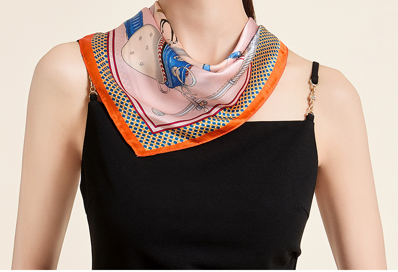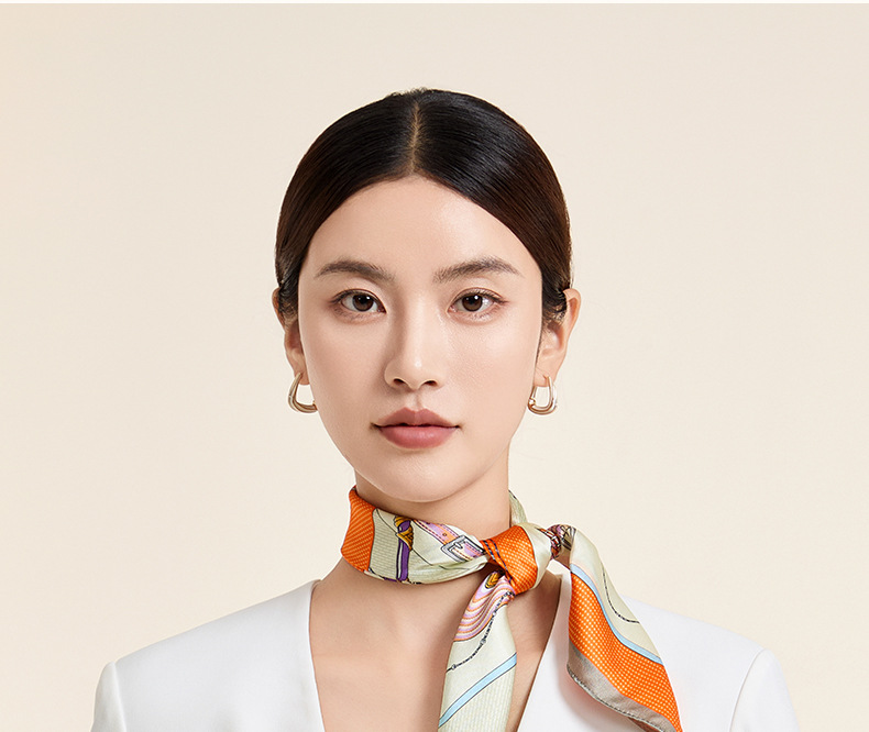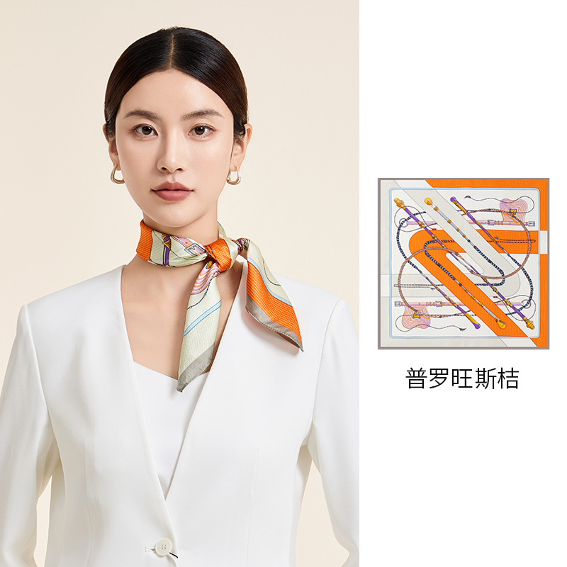 새로운 100% 뽕나무 실크 스카프 여성 봄과 가을 오렌지 실크 일반 크레페 새틴 스카프 하이 엔드 스퀘어 스카프 선물 올매치스토어 가기