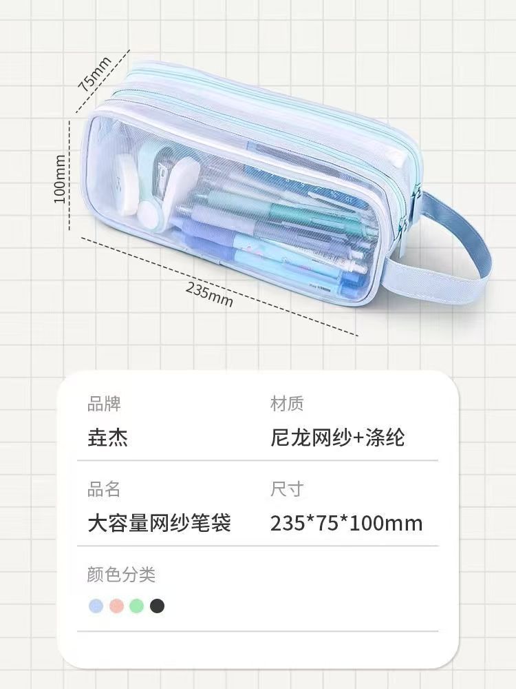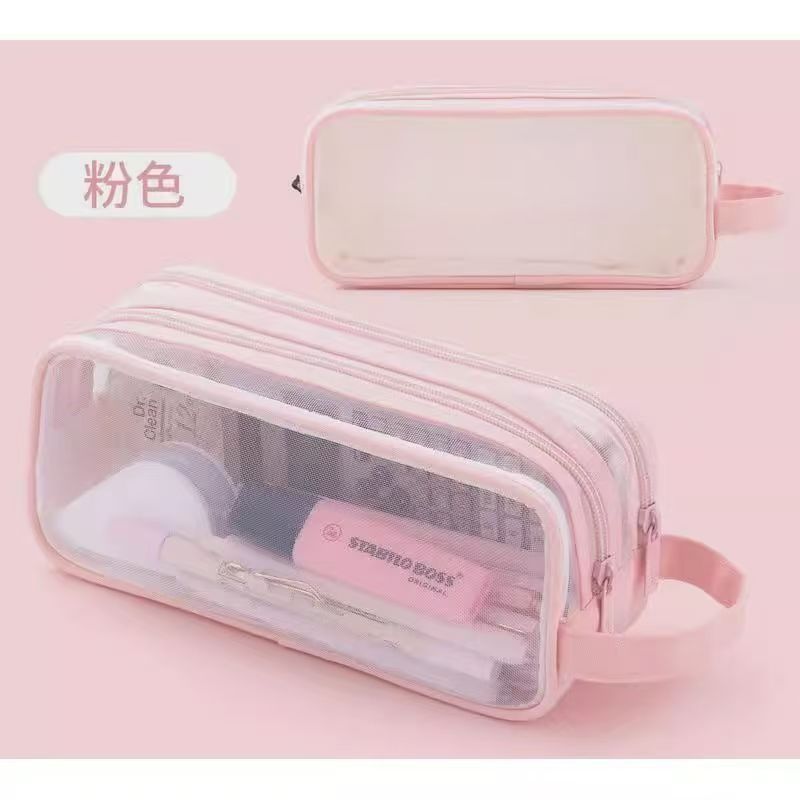 대용량 더블 레이어 메쉬 여성 초등학생을위한 투명 연필 케이스 중학교 시험 남성 간단한 휴대용 높은 색상 값