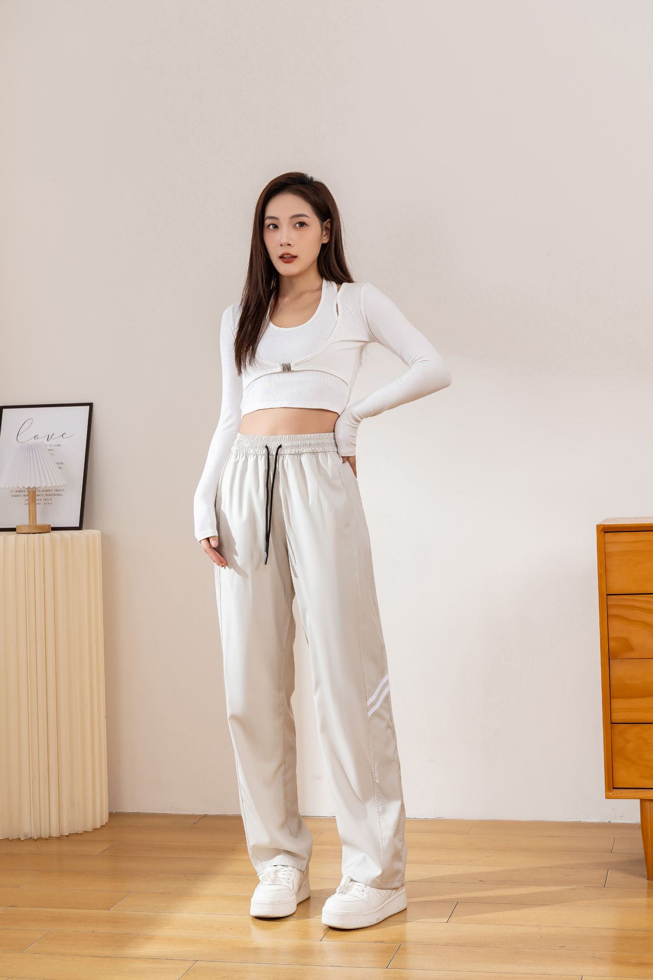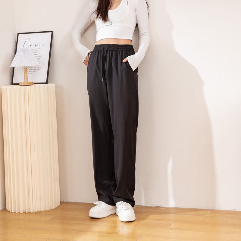 사계절 바지 여자 캐주얼 바지 여자 스포츠 바지 솔리드 컬러 스트레이트 다리 바지 좁은 넓은 다리 바지 여성 한국 여성 의류스토어 가기