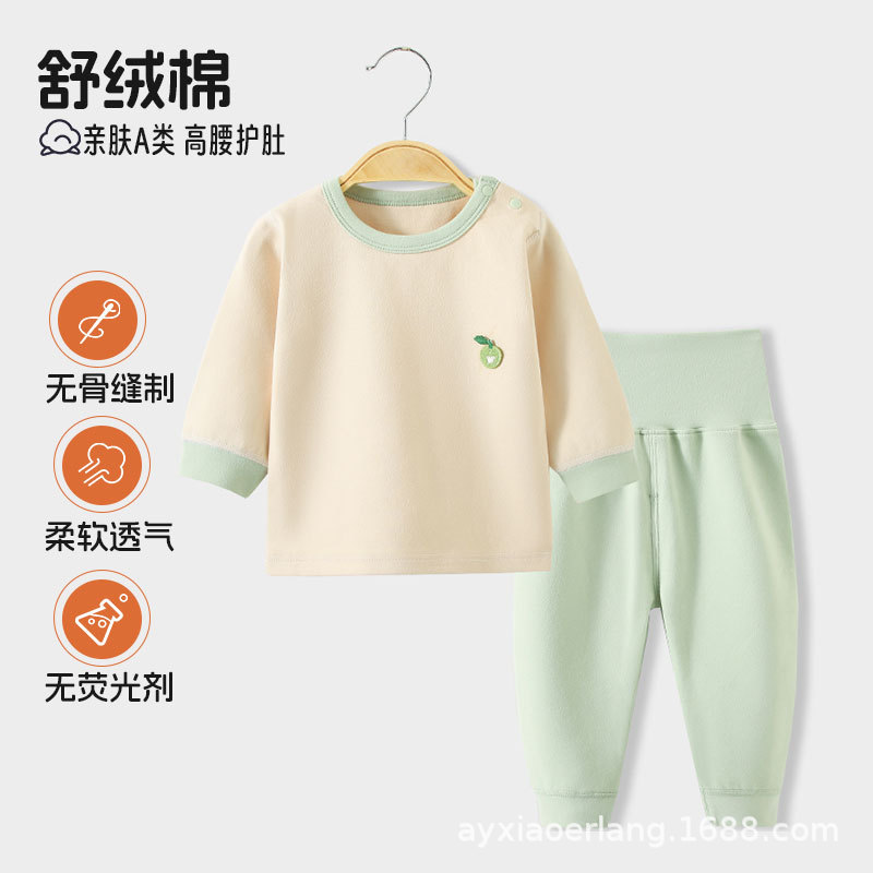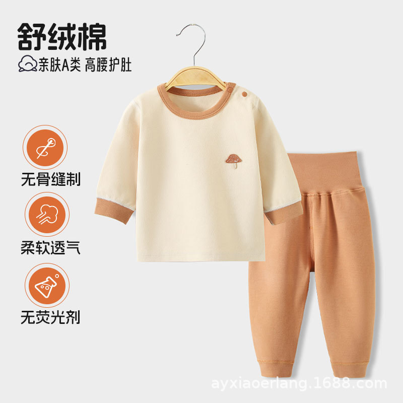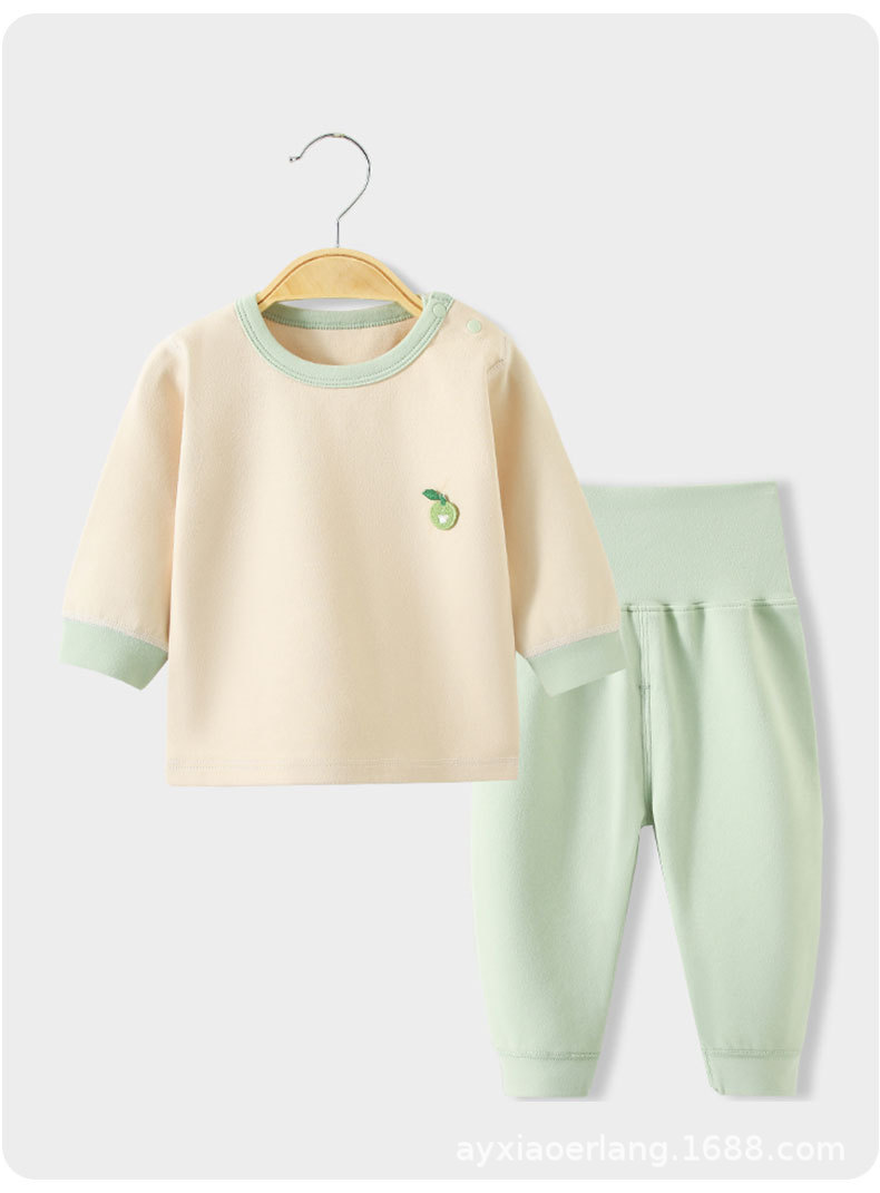 아기 옷 봄과 가을 아기 높은 허리 배꼽 보호 잠옷 가을과 겨울 풀오버베이스 열 속옷 분할 세트