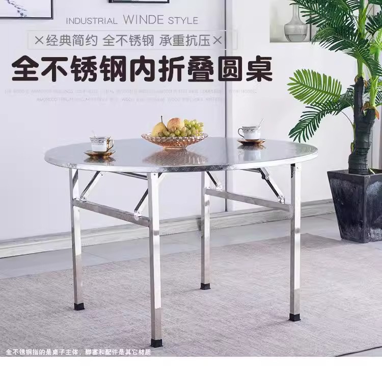 304 두꺼운 스테인레스 스틸 접이식 테이블 호텔 분할 턴테이블 라운드 테이블 상업용 야외 바베큐 스톨 휴대용 식탁스토어 가기