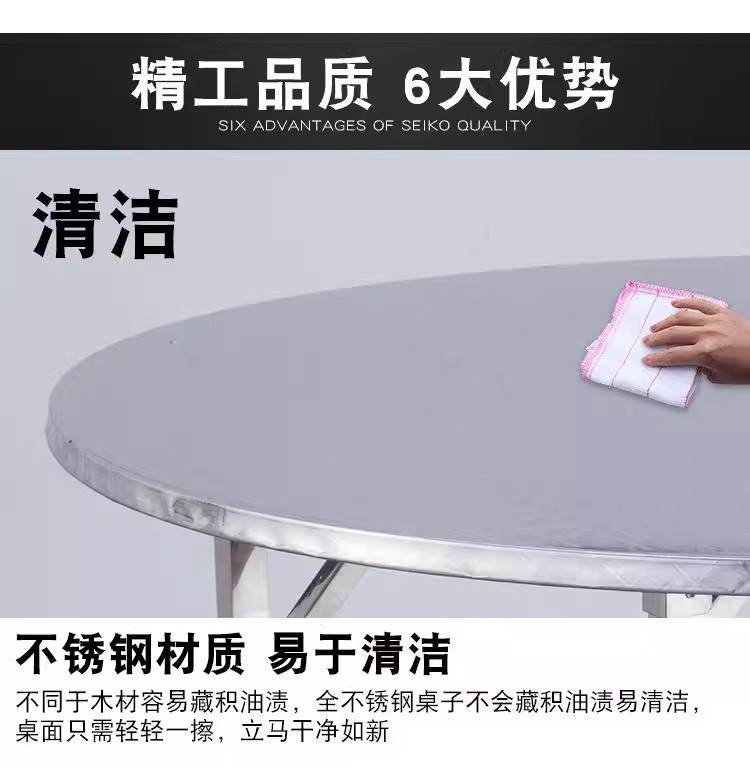 304加厚不锈钢折叠桌酒店分体转盘圆桌商用户外烧烤摆摊便携餐桌