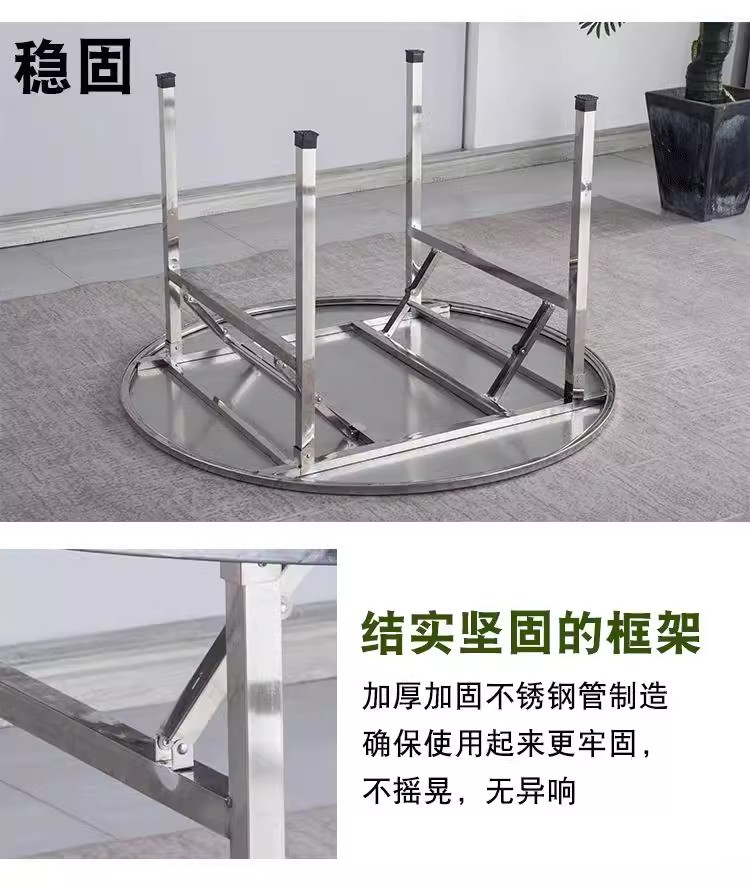304 두꺼운 스테인레스 스틸 접이식 테이블 호텔 분할 턴테이블 라운드 테이블 상업용 야외 바베큐 스톨 휴대용 식탁