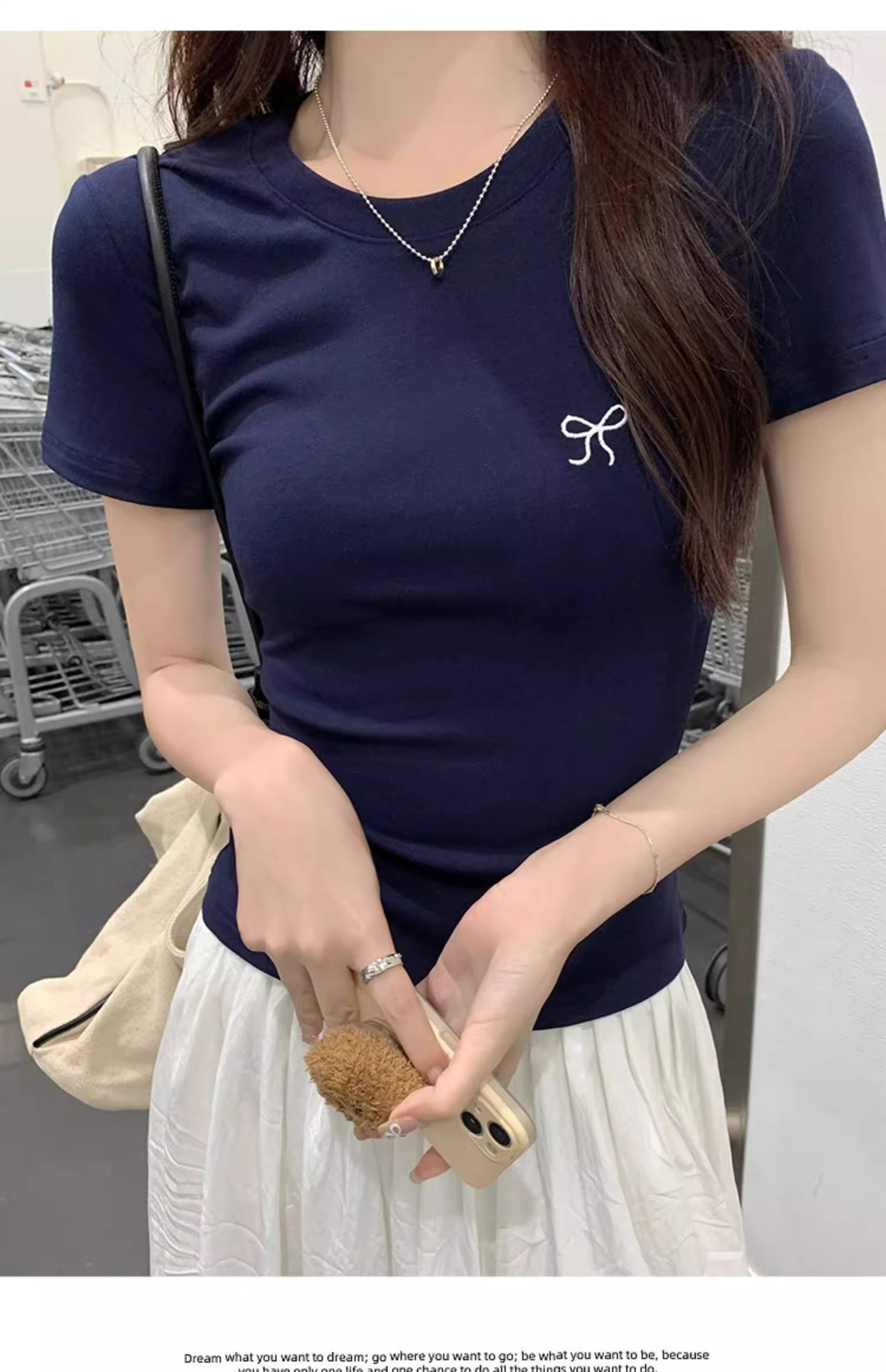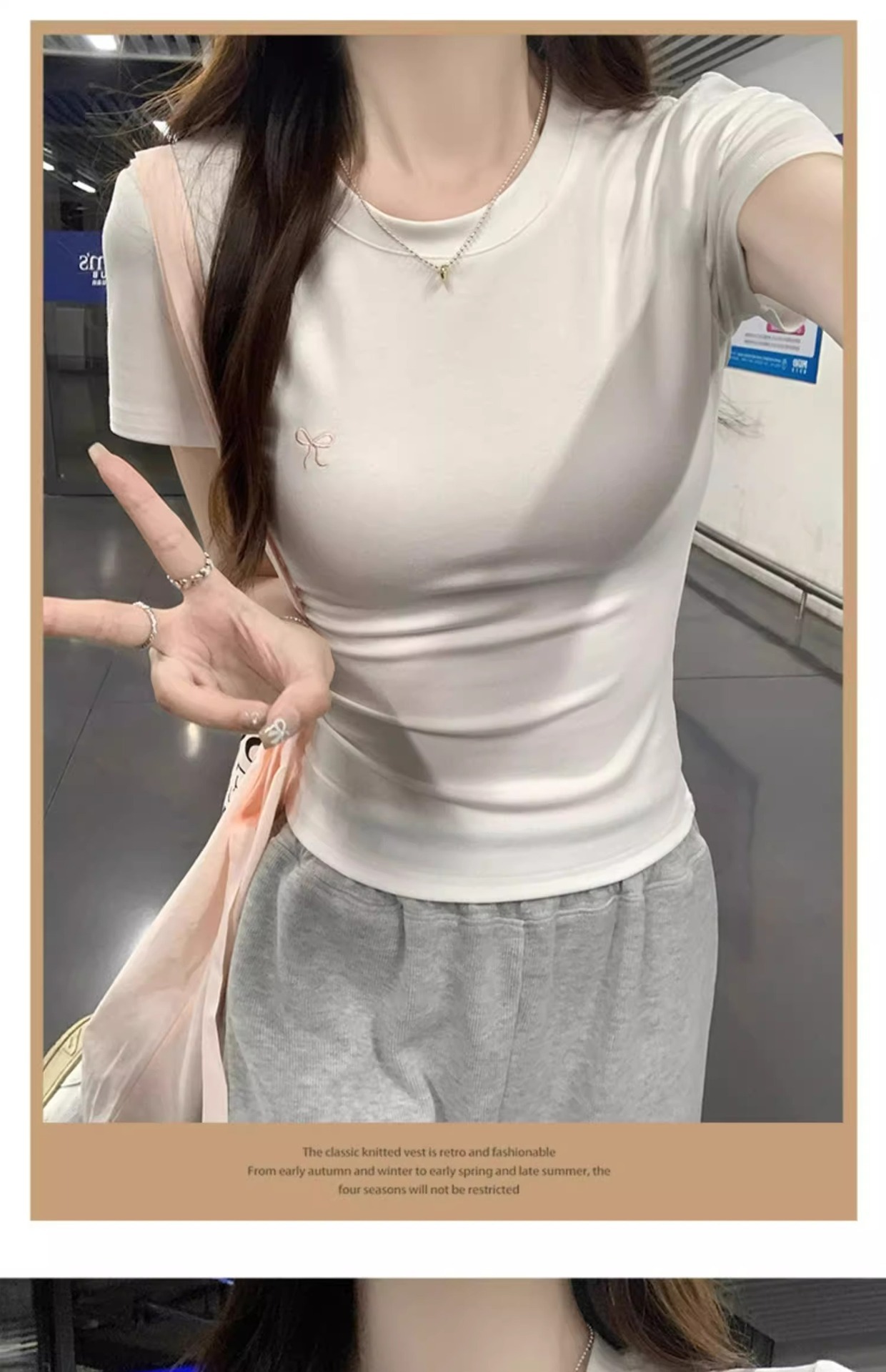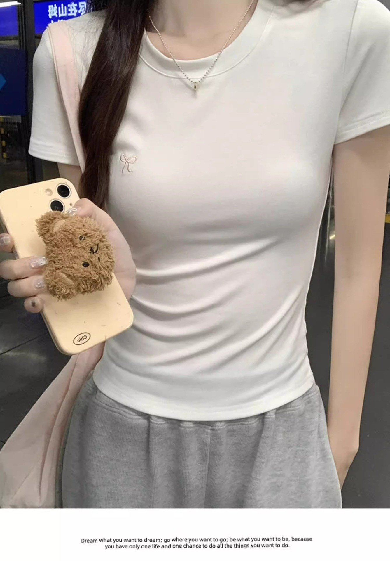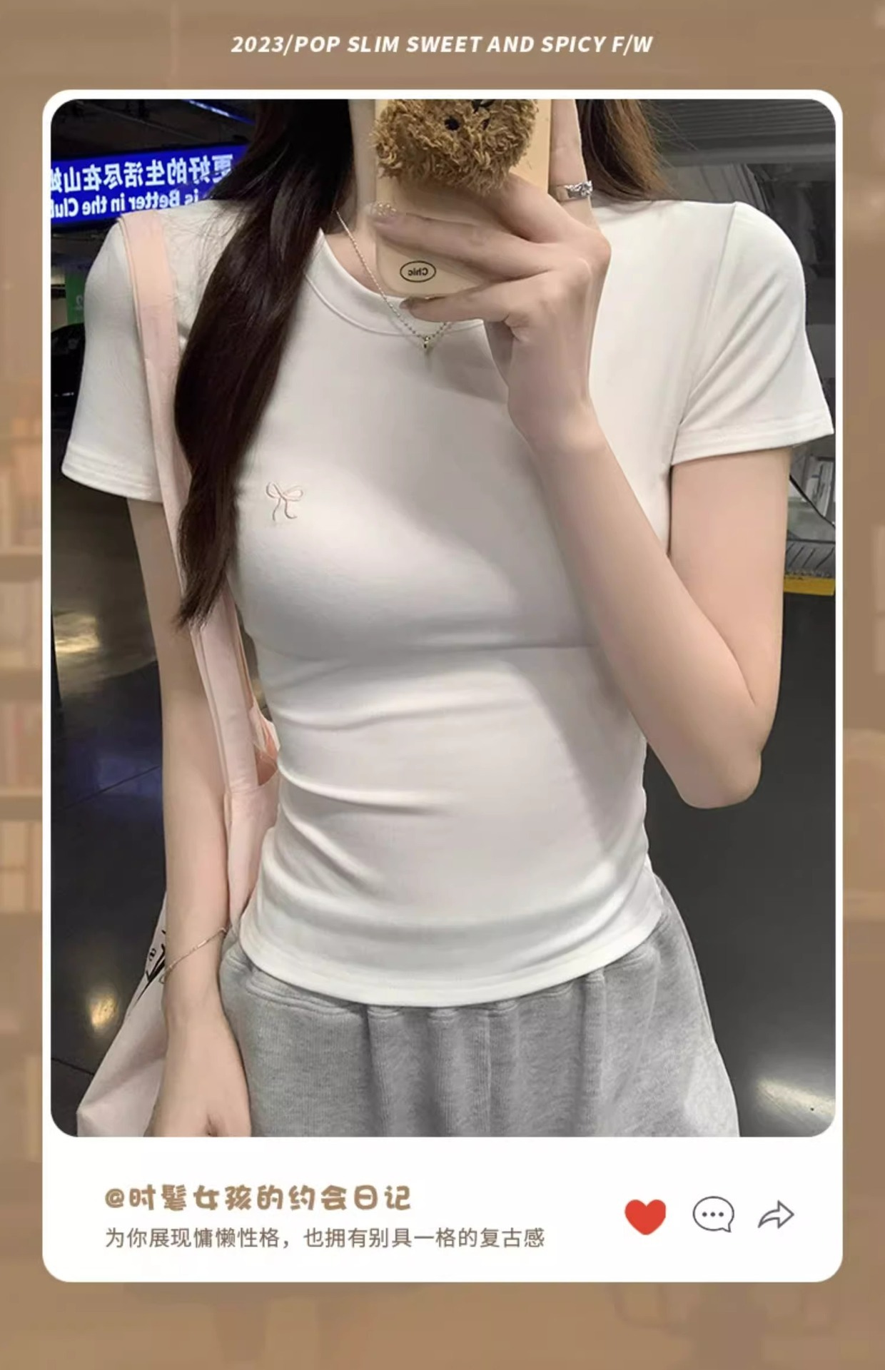 스파이스 걸스 어깨 반팔 티셔츠 여성 여름 2024 새로운 인물 순수 미국 타이트 짧은 차 스타일 탑스토어 가기