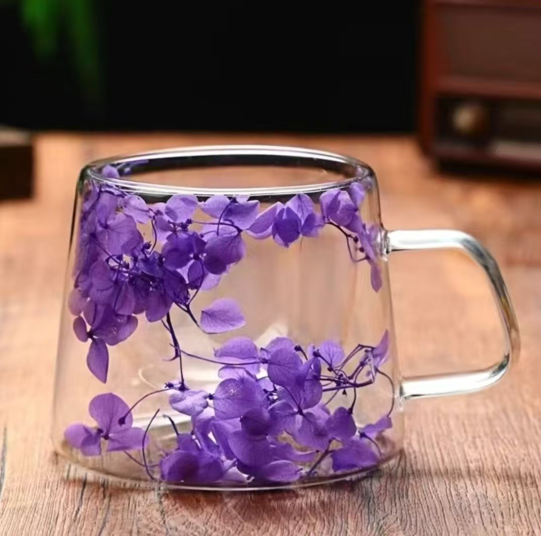 말린 꽃 더블 꽃잎 유리 유사 컵 크리 에이 티브 크로스 보더 고온 방지 투명 실제 꽃 고 붕규산 커피 컵스토어 가기