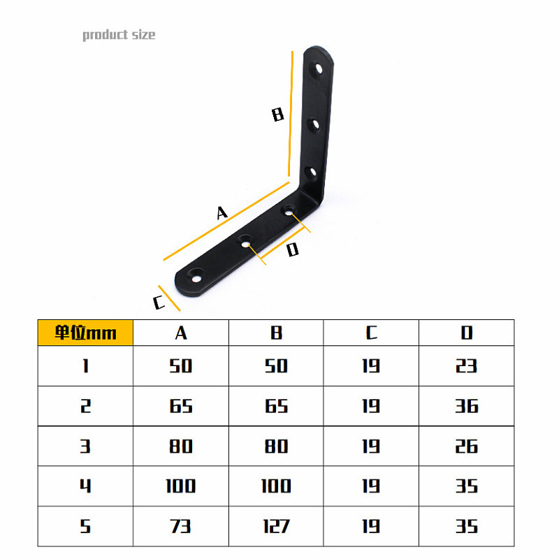 스테인레스 스틸 L 자형 90 도 앵글 코드 블랙 두꺼운 바닥 브래킷 가구 홈 장식 브래킷 커넥터