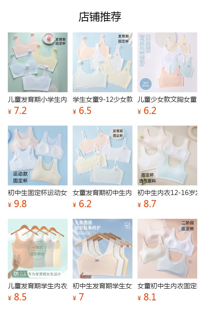속옷 학생 중학생 어린이 개발 여아 브라 여아 고정컵 9-12 단계 작은 조끼스토어 가기