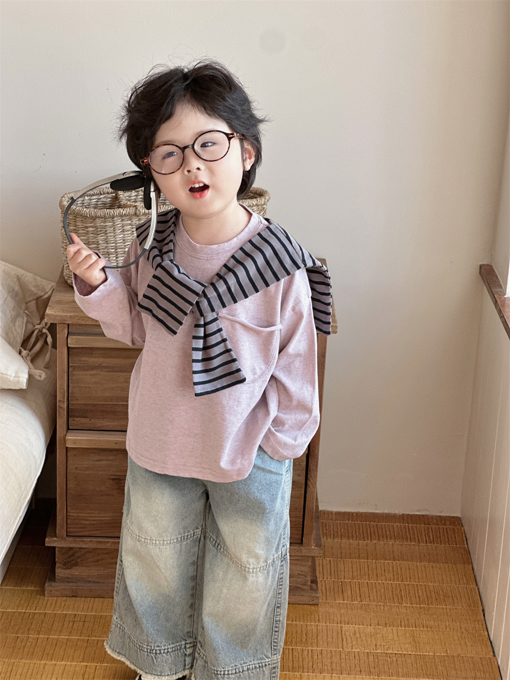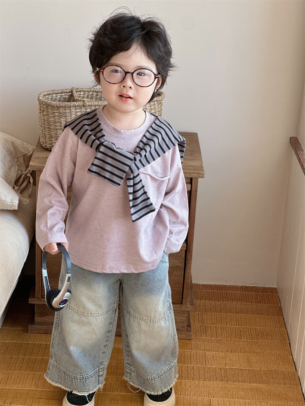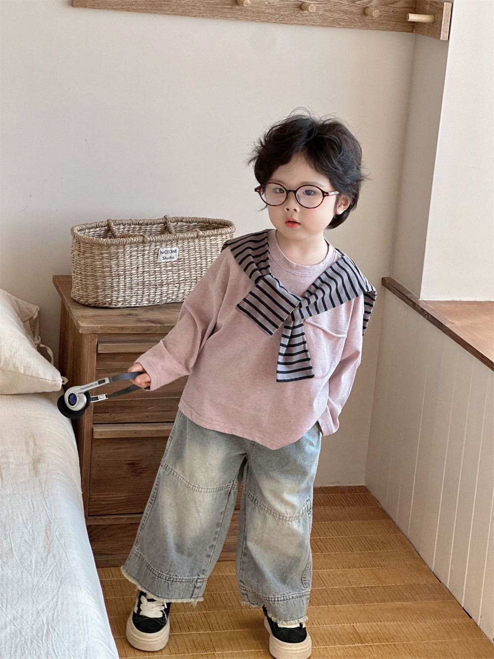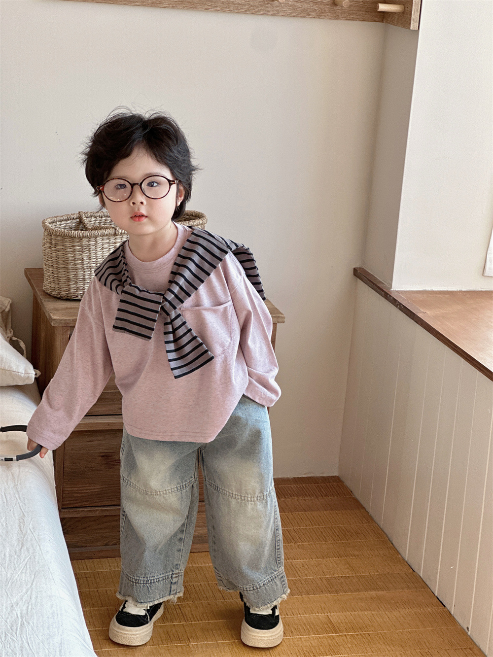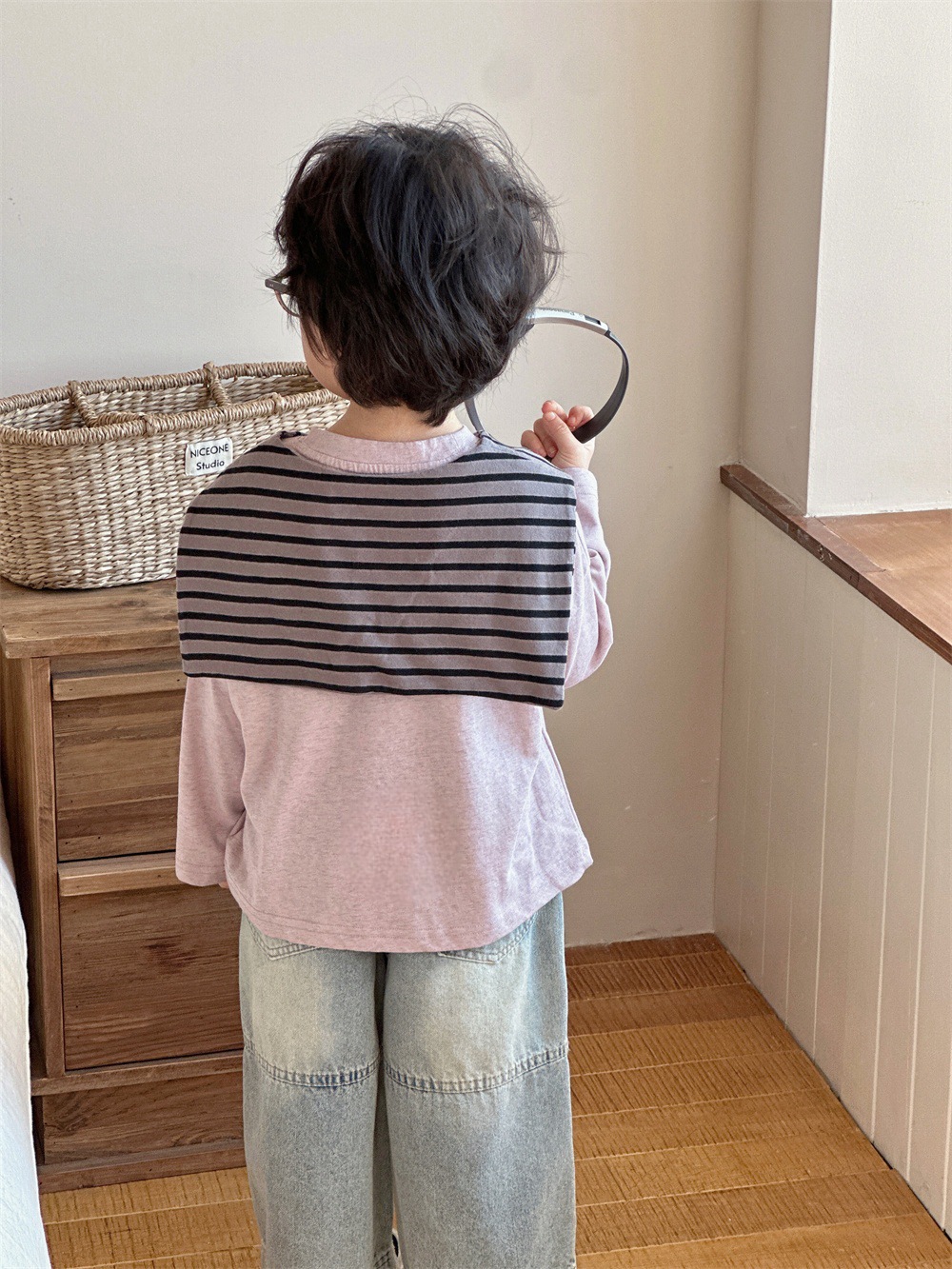 게으른 패션 아동복 줄무늬 목도리 티셔츠 한국 스타일 어린이 느슨한 소프트 왁스 의류 대비 컬러 디자이너 원본스토어 가기