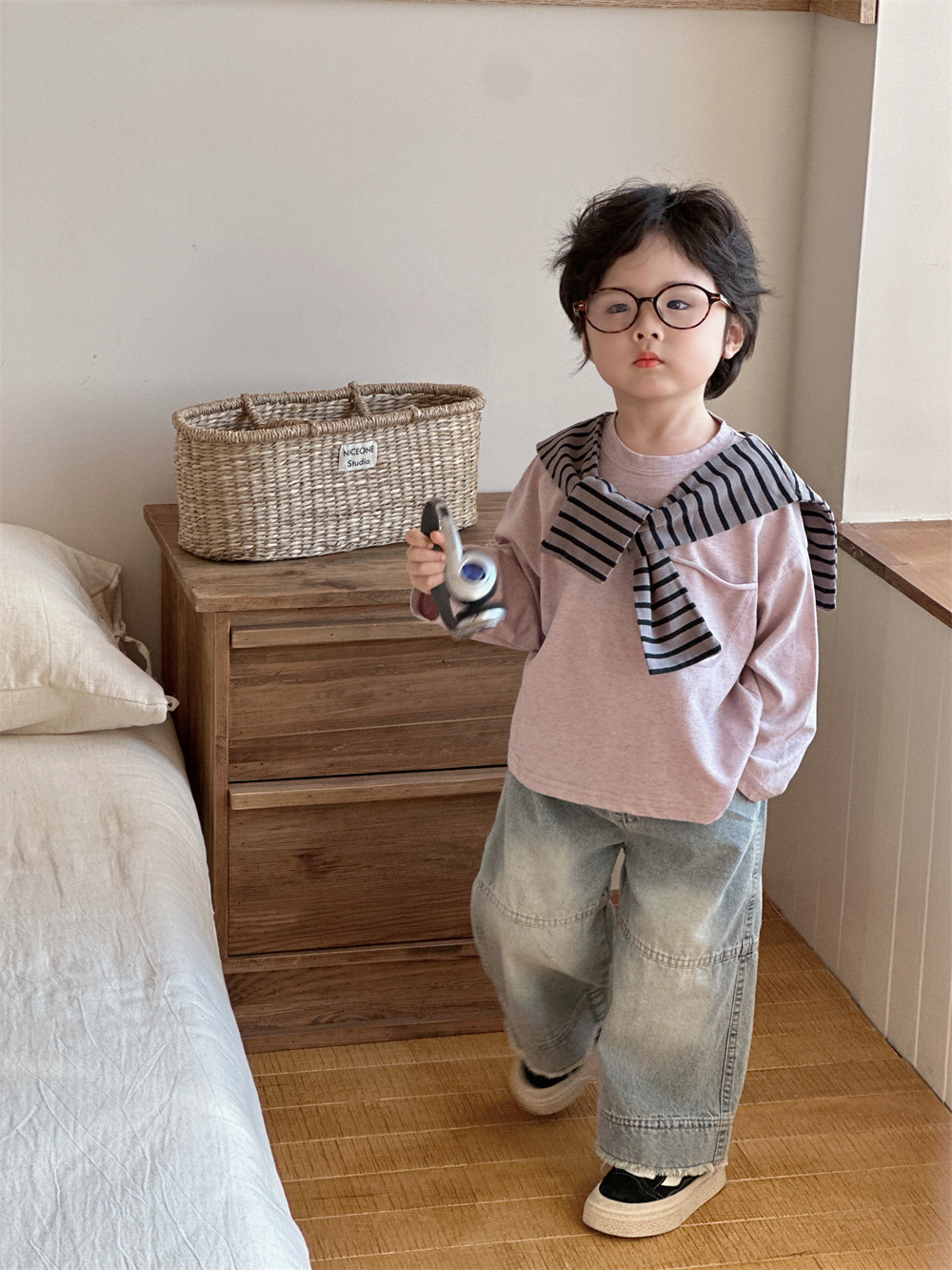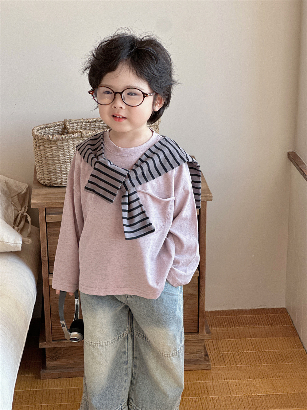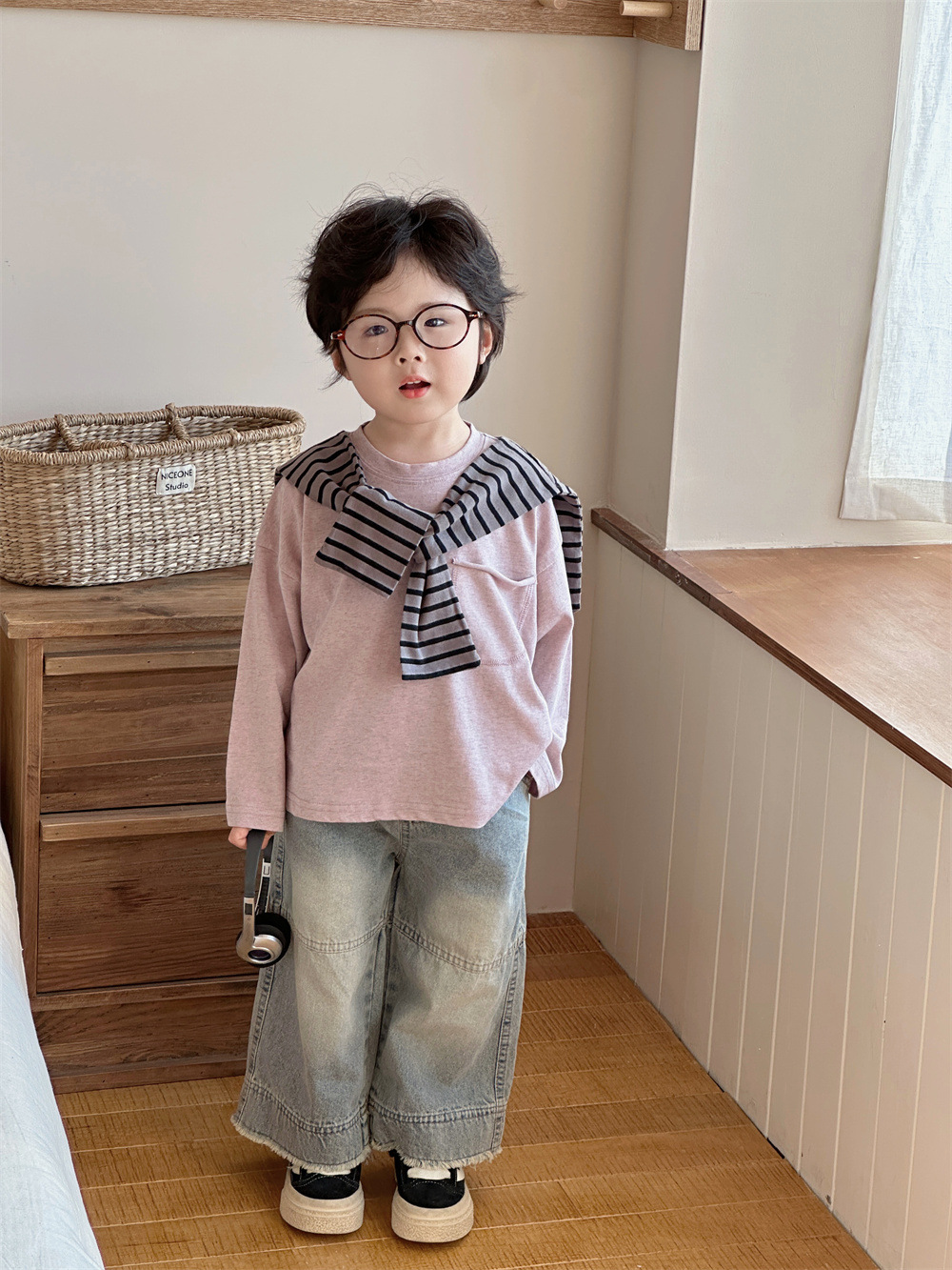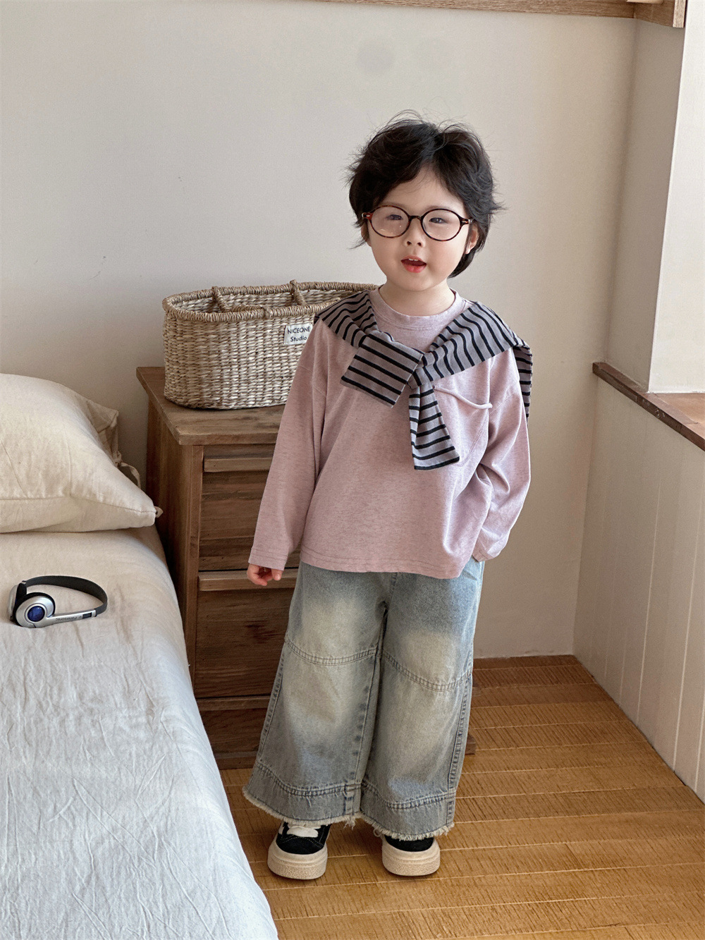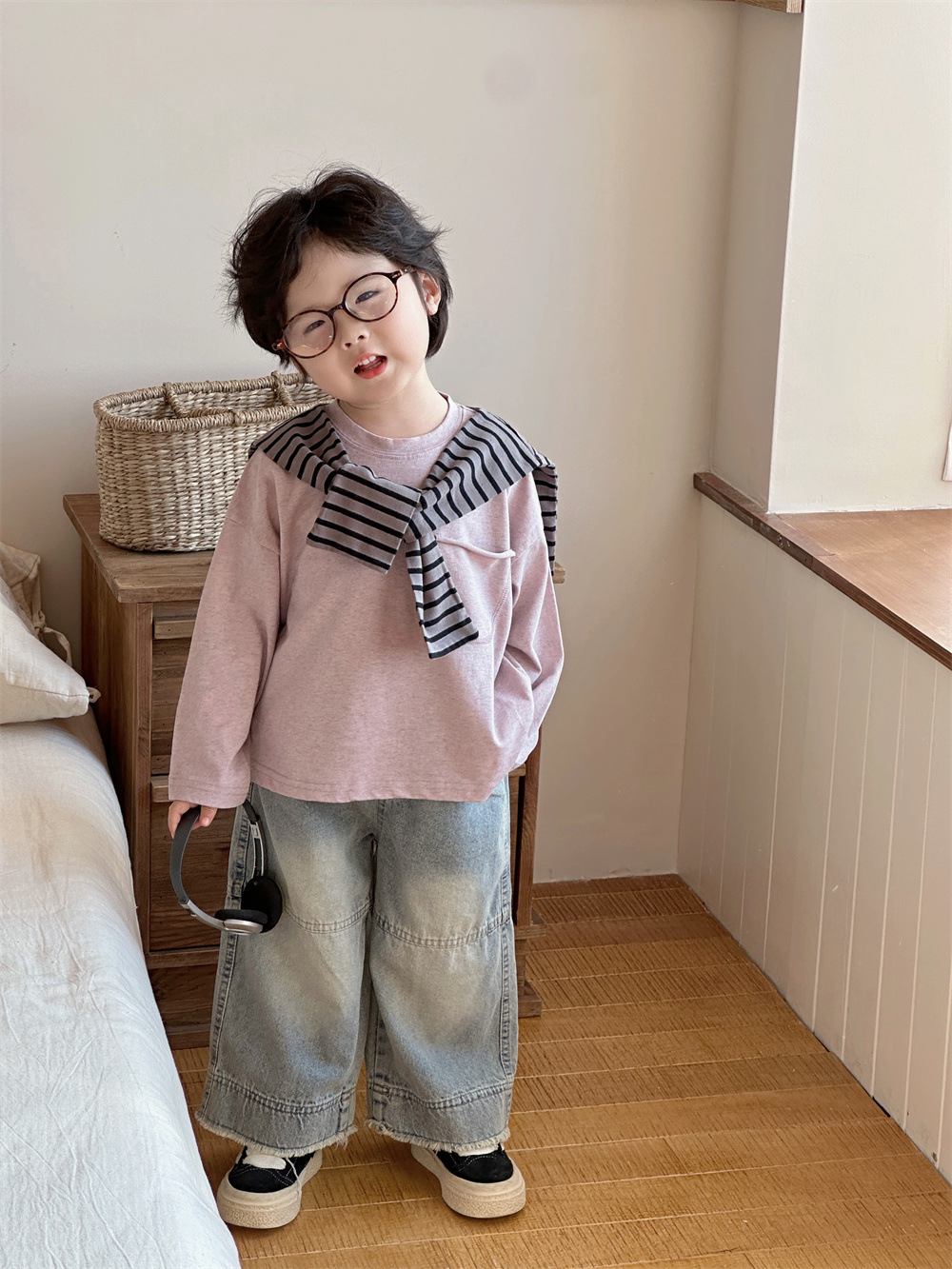 게으른 패션 아동복 줄무늬 목도리 티셔츠 한국 스타일 어린이 느슨한 소프트 왁스 의류 대비 컬러 디자이너 원본스토어 가기