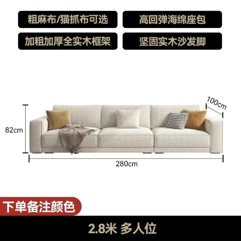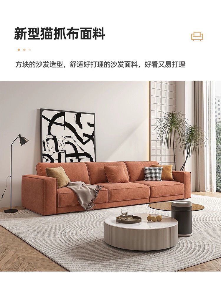 간단한 현대 조합 작은 아파트 스트레이트 고양이 스크래치 천 높은 등받이 소파 2024 크고 작은 아파트를위한 새로운 스타일의 거실 소파