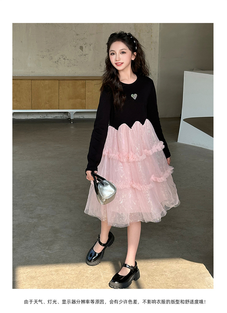 소녀 원피스 2025 봄 새로운 큰 소년 한국 스타일 스타일 니트 바느질 공주 원피스 어린 소녀의 요정 원피스스토어 가기
