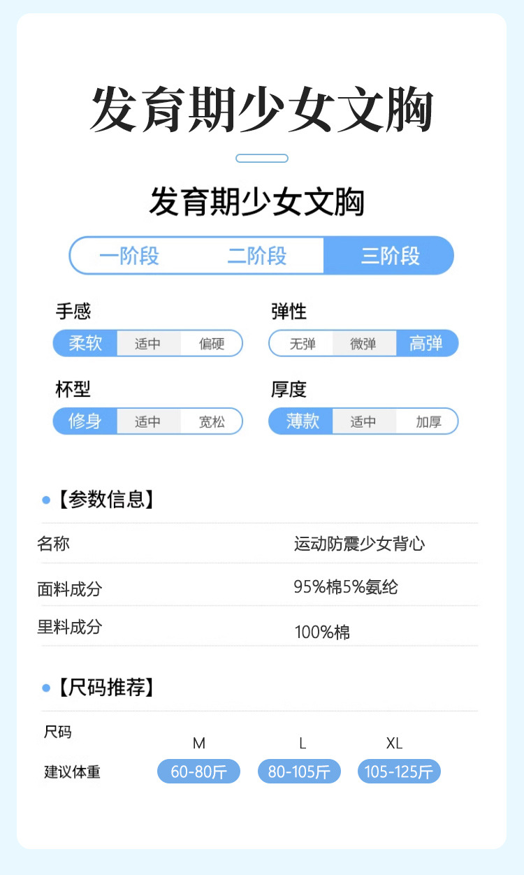 여아 속옷 2 ~ 3 단계 조기 고교생 순면 스포츠 충격 방지 조끼 청소년 소녀 개발 브라