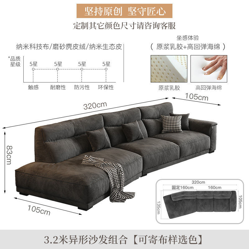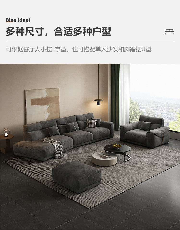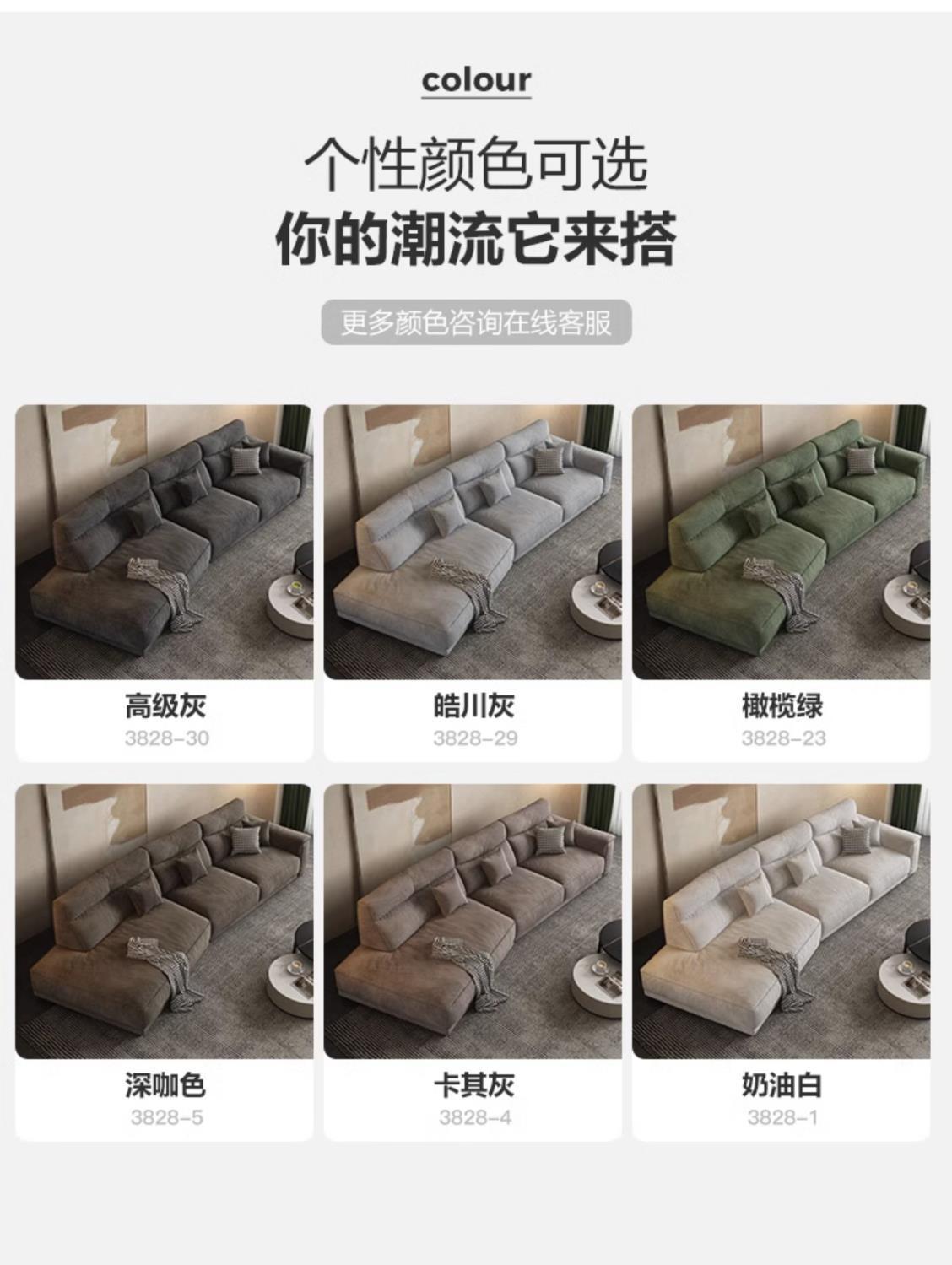 2024 신기술 천 소파 이탈리아 스웨이드 인터넷 연예인 거실 현대 스트레이트 빈 커드 블록 모양의 소파스토어 가기