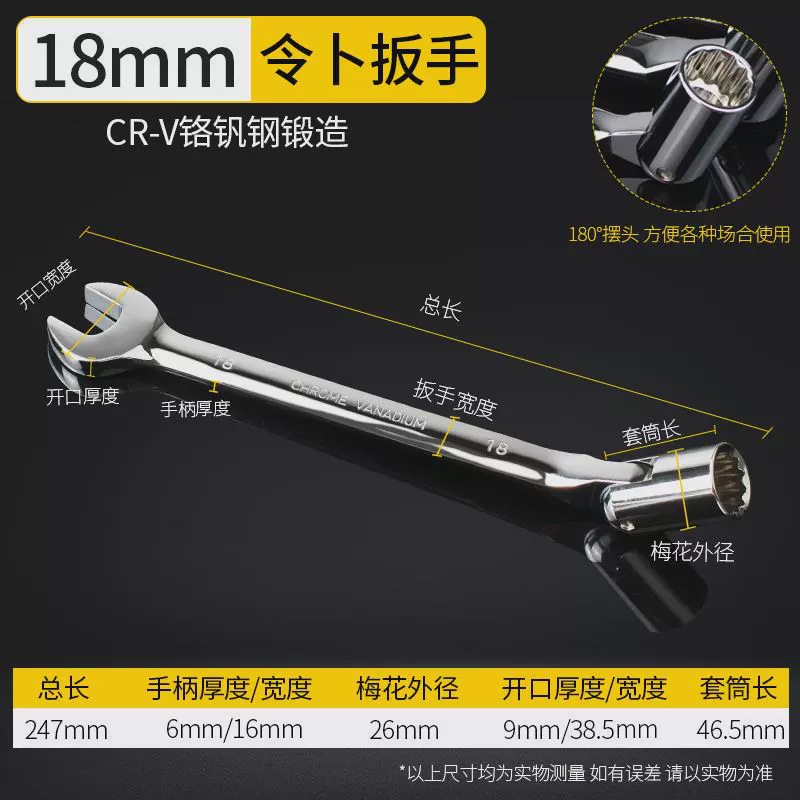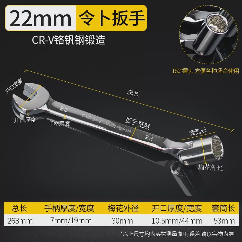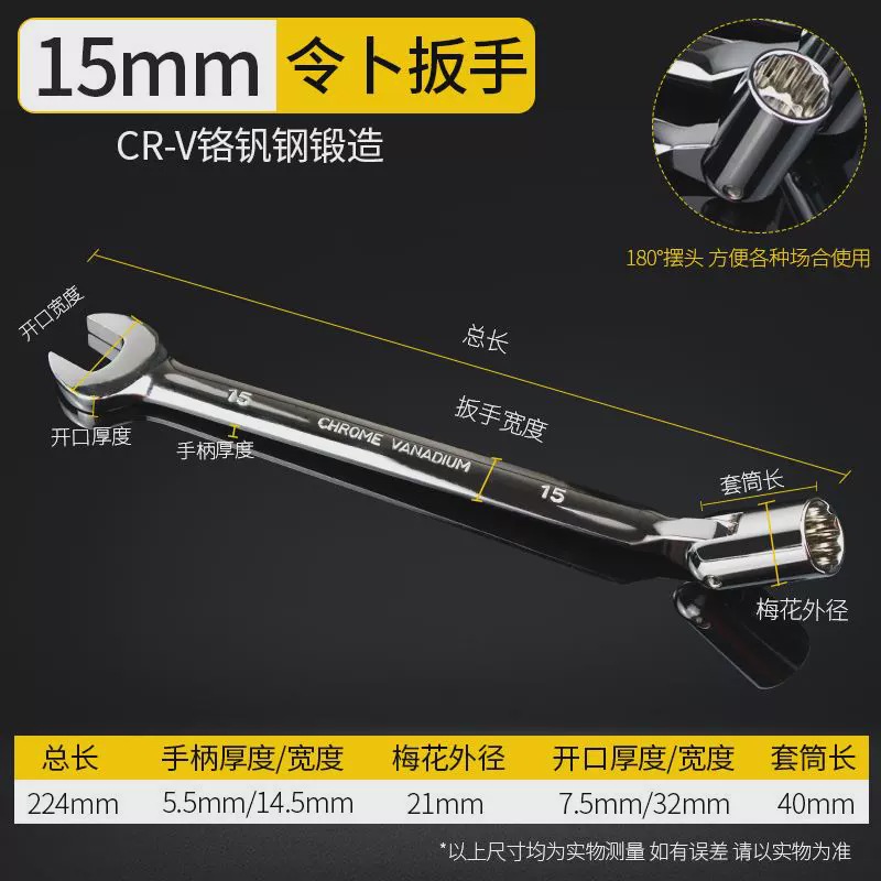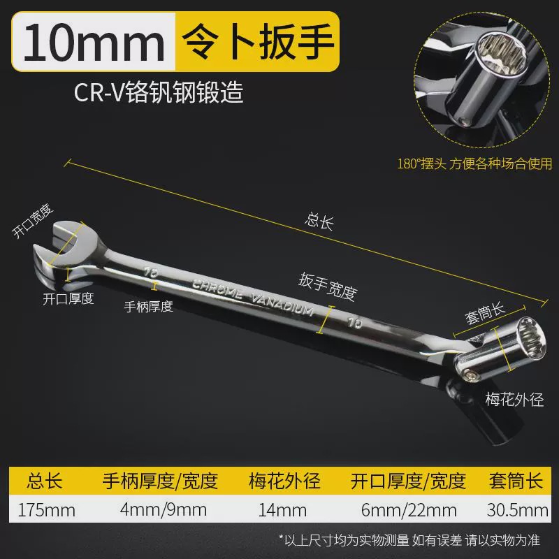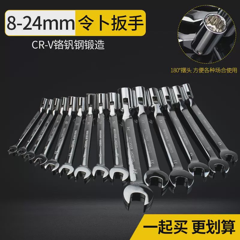Lingbu 렌치 8-22 단일 헤드 조절 소켓 이중 목적 렌치 회전 가능한 Torx 오픈 렌치 자동 수리 도구스토어 가기