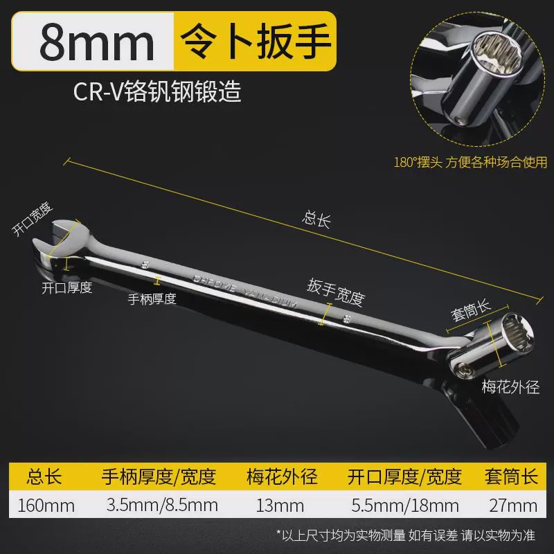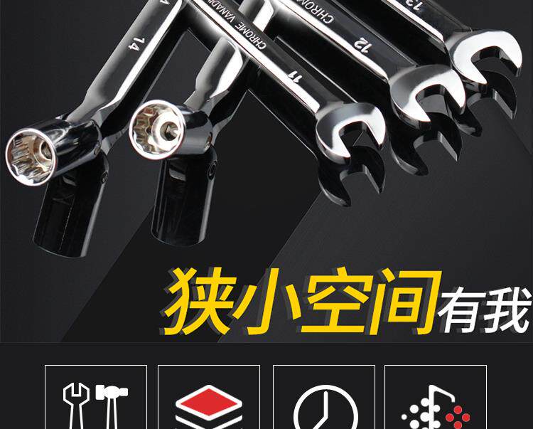 Lingbu 렌치 8-22 단일 헤드 조절 소켓 이중 목적 렌치 회전 가능한 Torx 오픈 렌치 자동 수리 도구