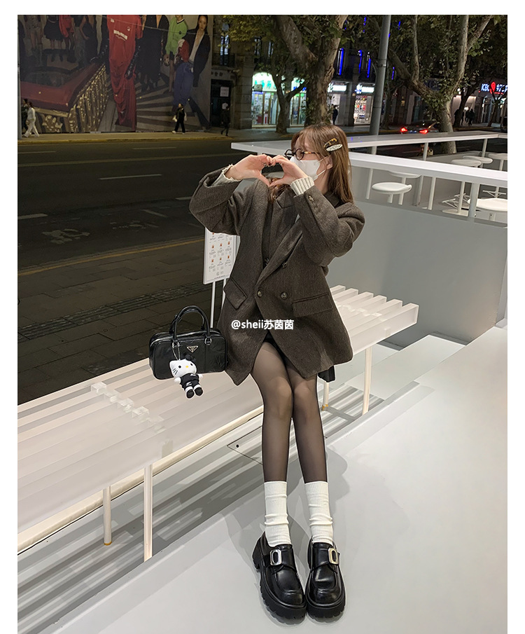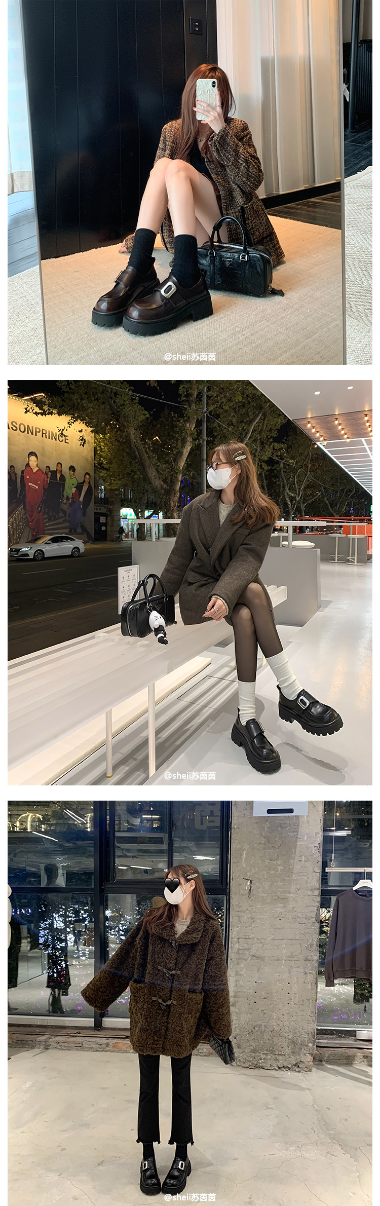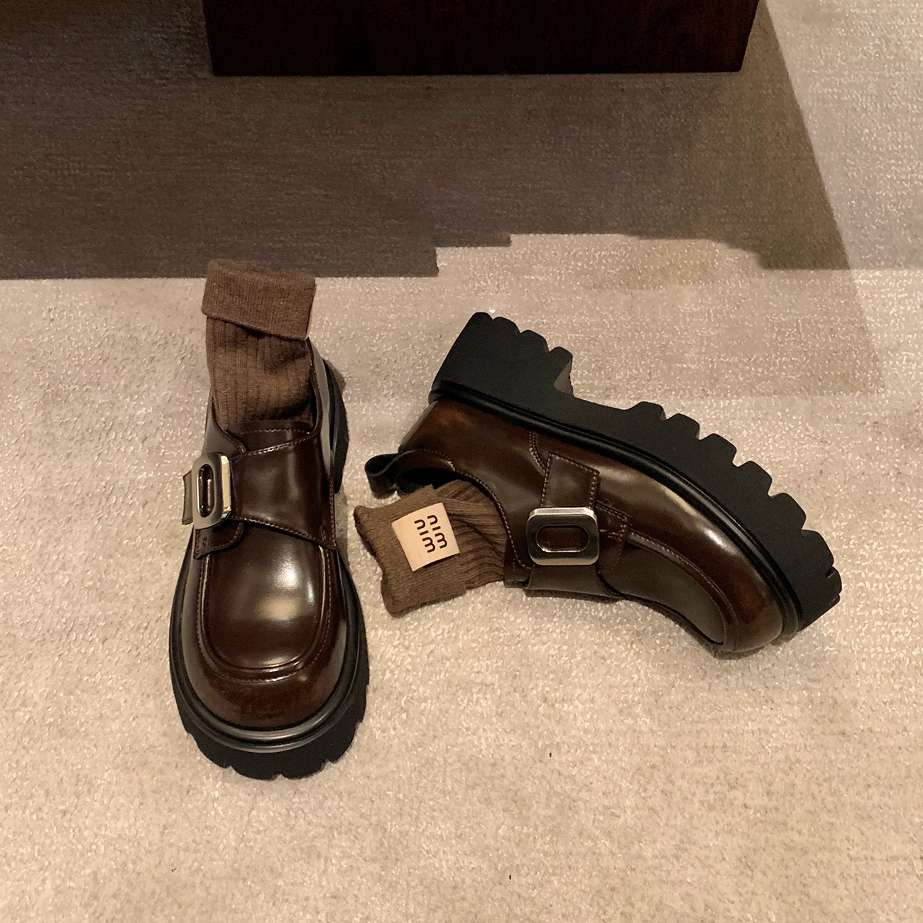 양가죽 버전 ~ 정품 가죽 두꺼운 밑창 머핀 대학 스타일 슬립 온 로퍼 여성 영국 스타일의 복고풍 작은 가죽 신발 단층 신발스토어 가기