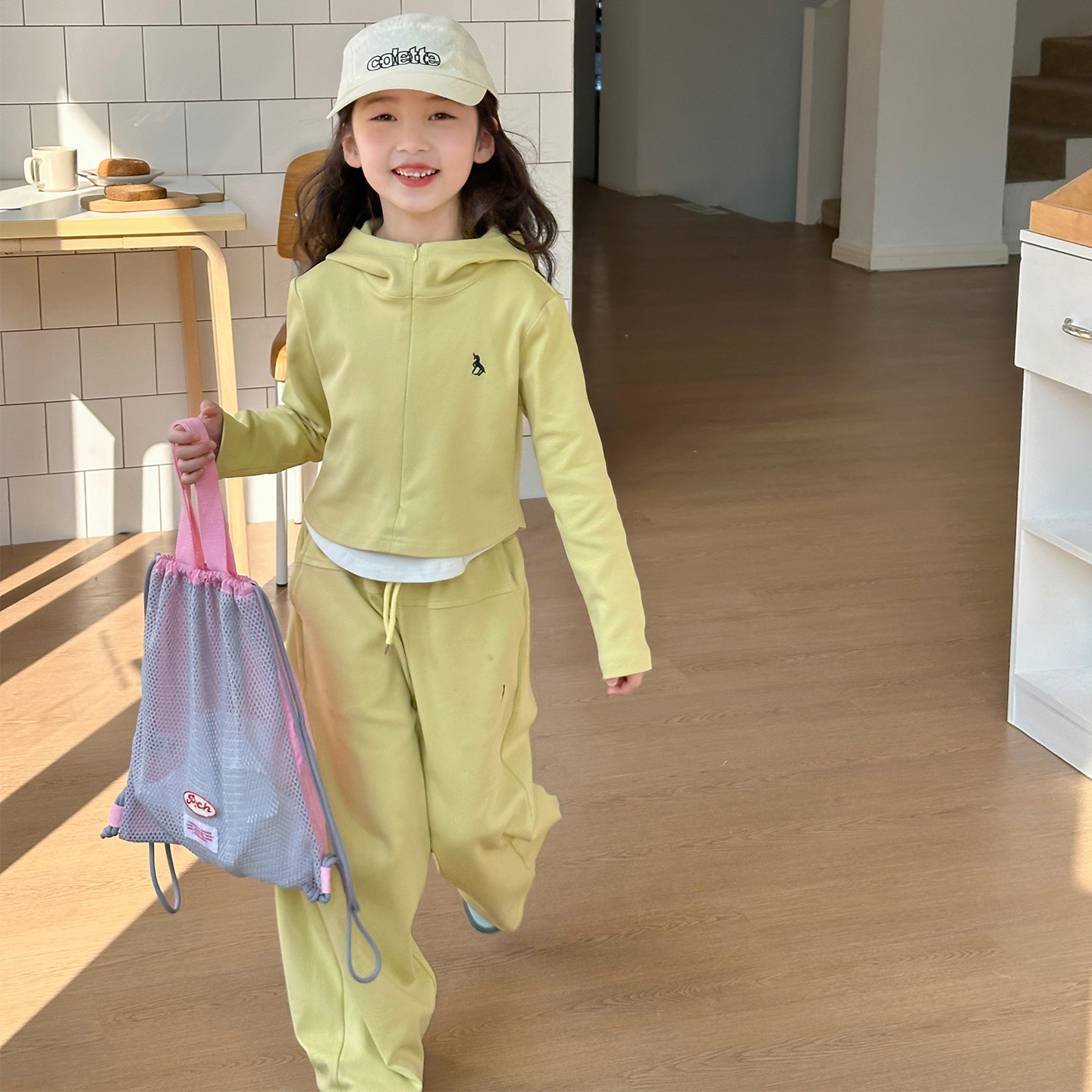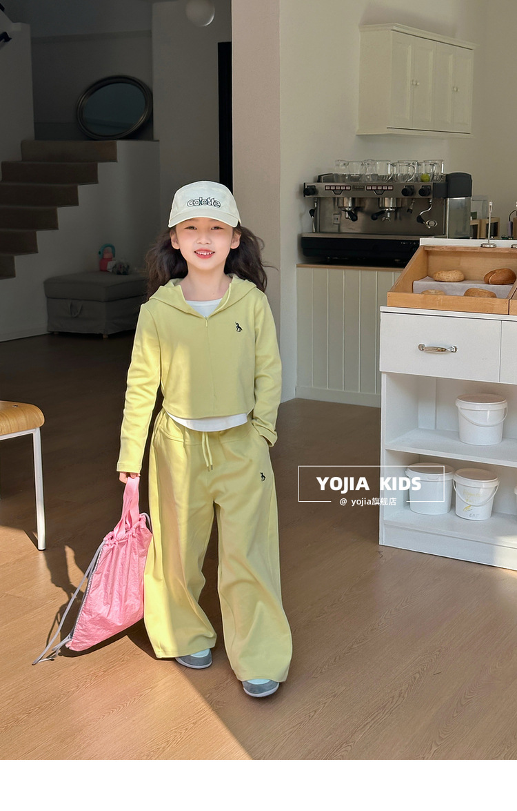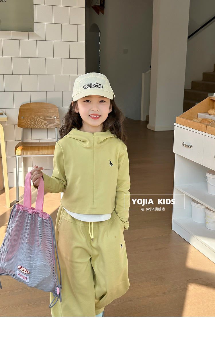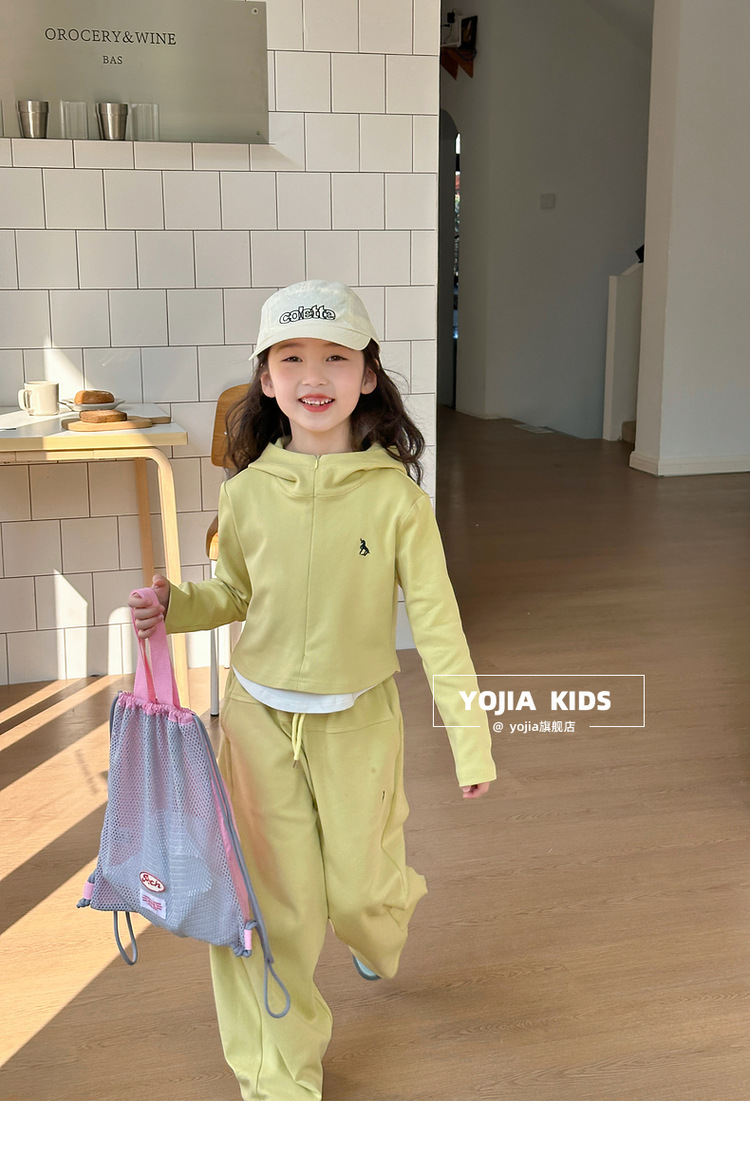 YOJIA 여아 스웨트셔츠 세트 2025년 신상 한국판 투피스 스타일 아동복 후드 투피스 세트 봄/겨울 의류스토어 가기