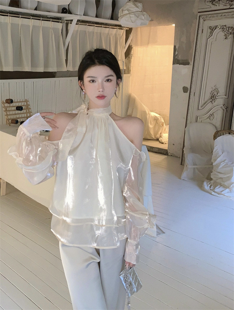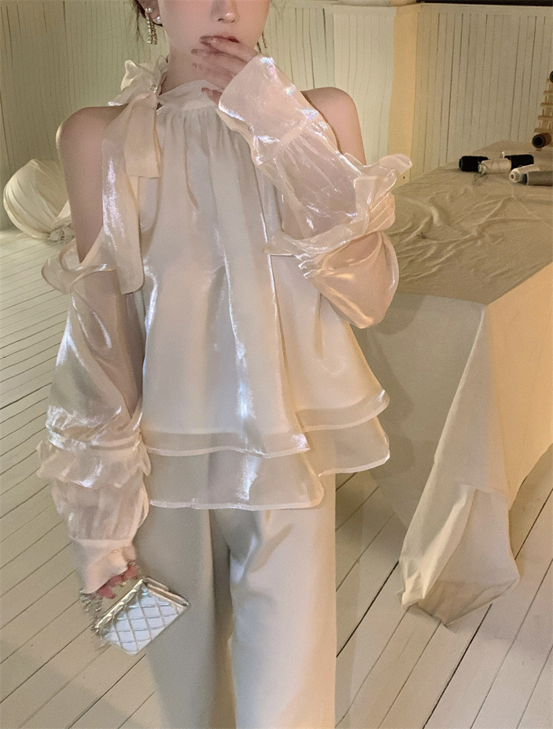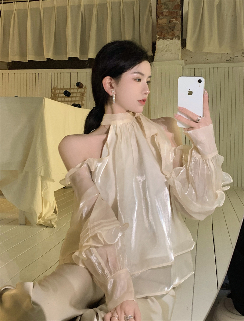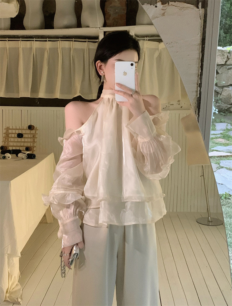 2025 최고의 여성 봄과 여름 느슨한 부드러운 바람 셔츠 달콤한 메쉬 셔츠 트렌디