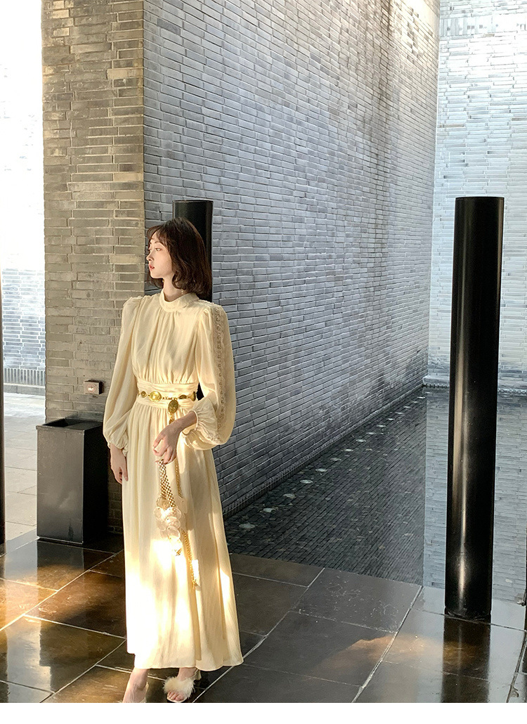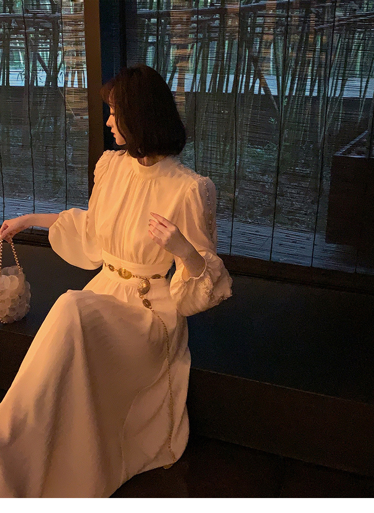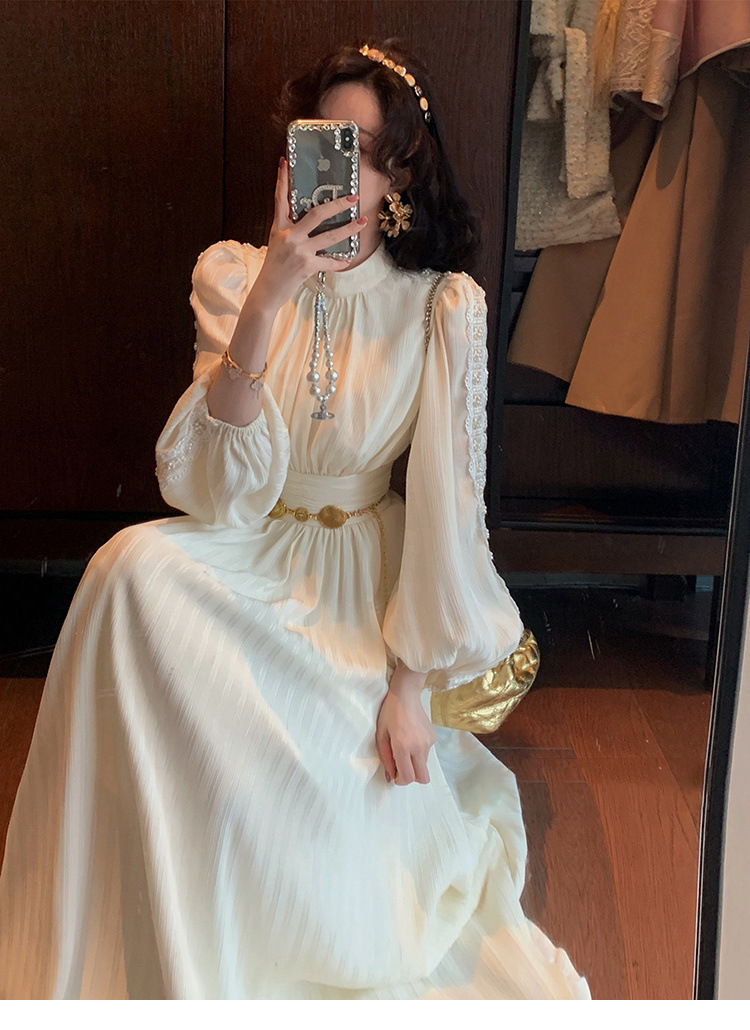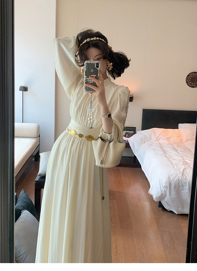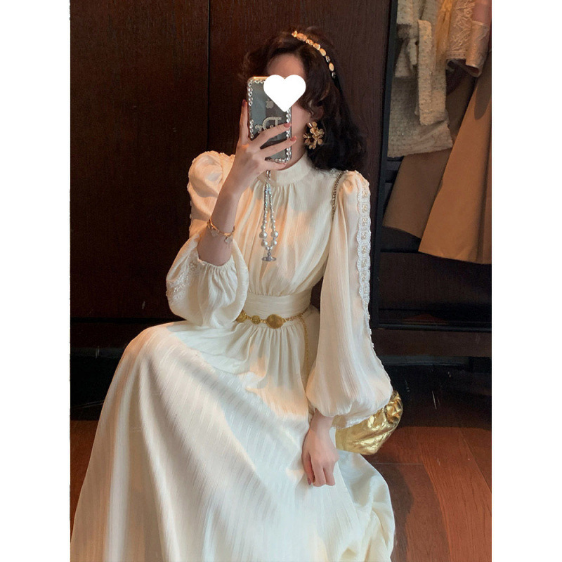 프랑스 우아한 긴 원피스 2025 가을 고급 요정 허리 원피스스토어 가기