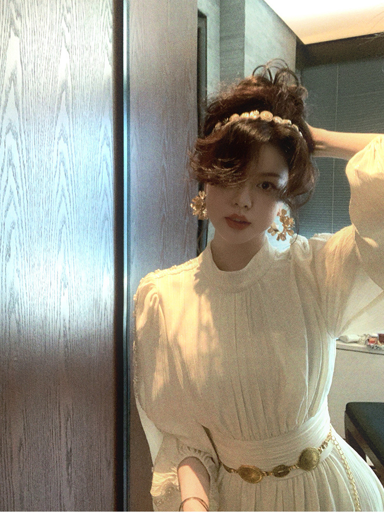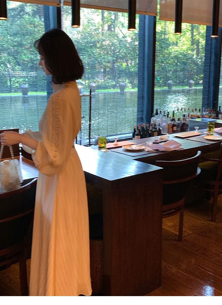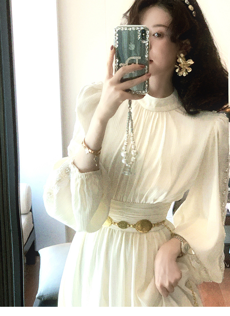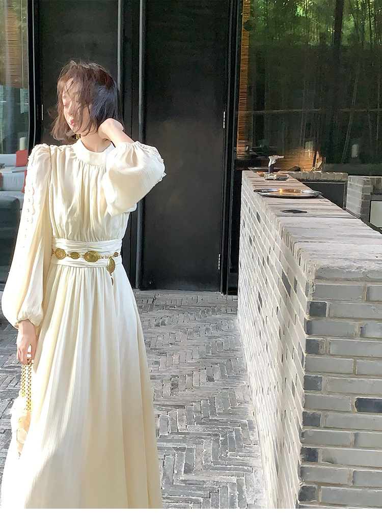 프랑스 우아한 긴 원피스 2025 가을 고급 요정 허리 원피스스토어 가기