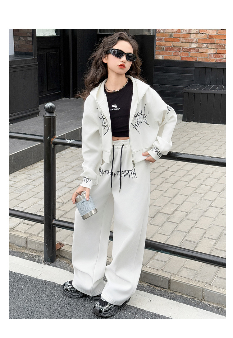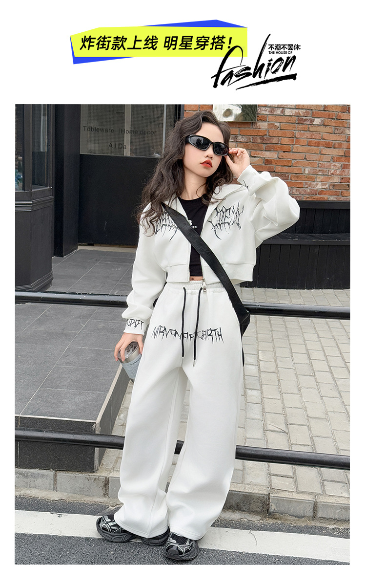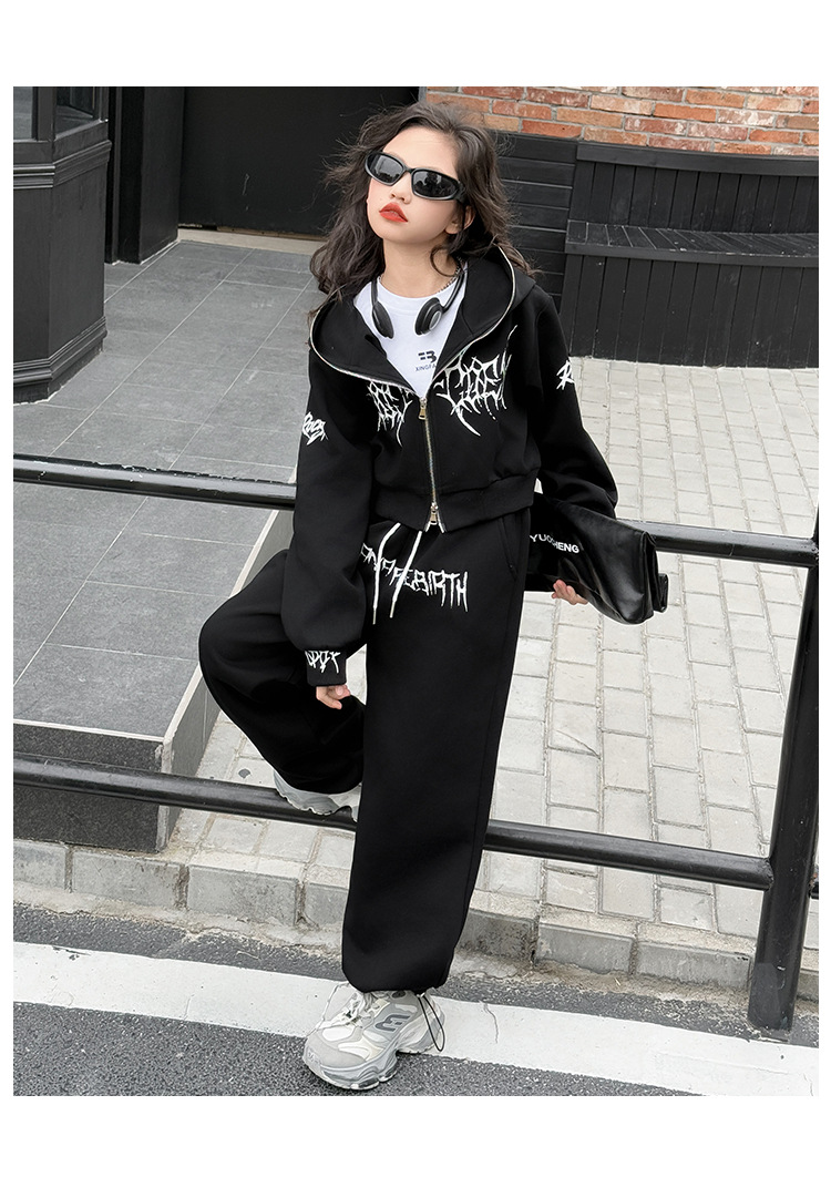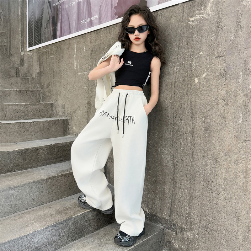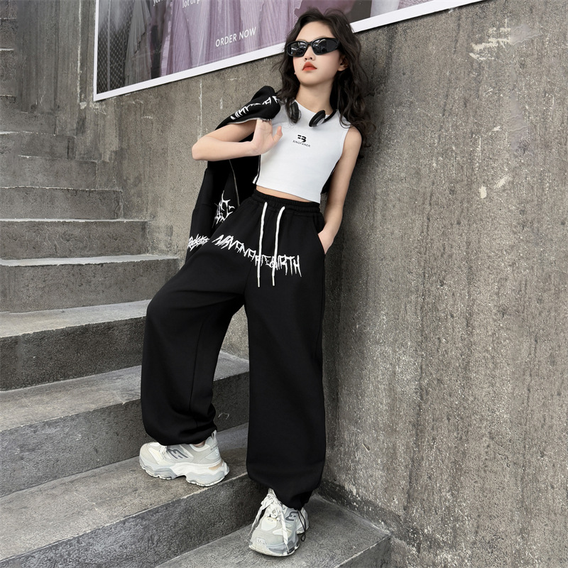 소녀 거리 댄스 세트 2025 세트 봄 가을 새로운 어린이 서양 스타일 유행 중 큰 어린이 캐주얼 바지 3 조각 트렌디스토어 가기