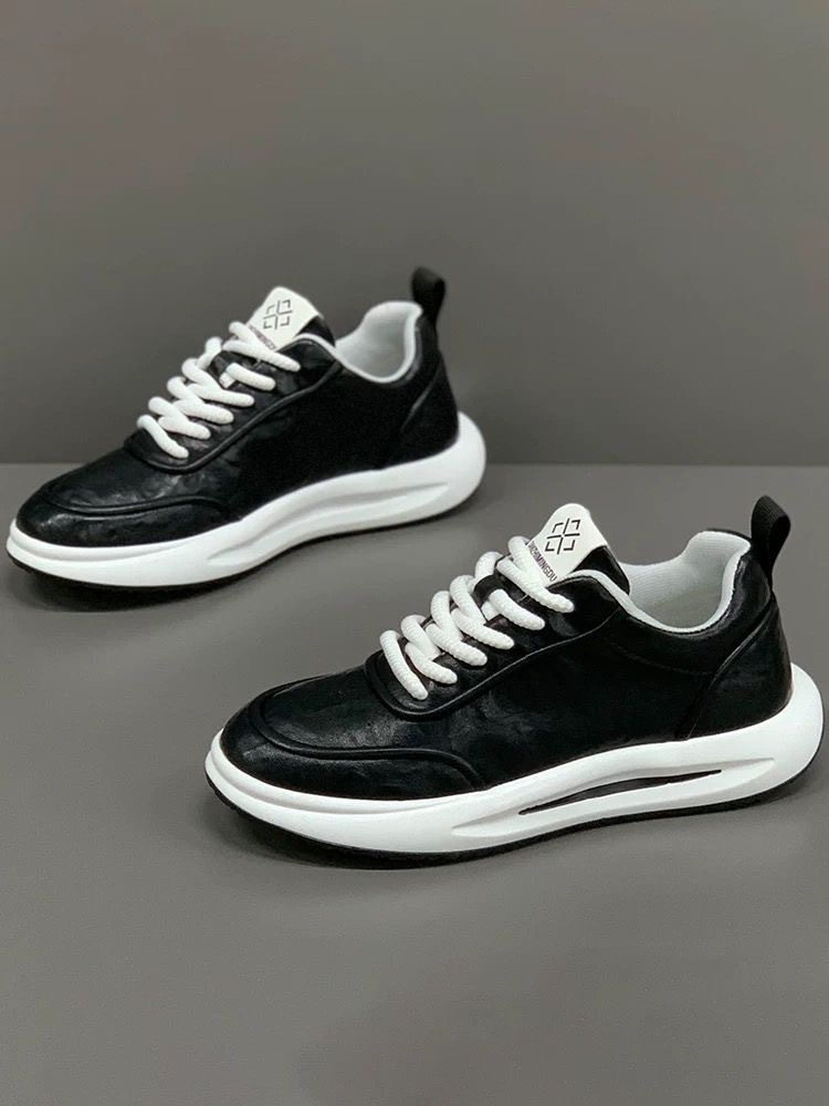 남자 신발 2025 봄 새로운 두꺼운 유일한 미끄럼 방지 소프트 솔 운동화 캐주얼 가죽 솔리드 컬러 올 매치 대외 무역 증가스토어 가기
