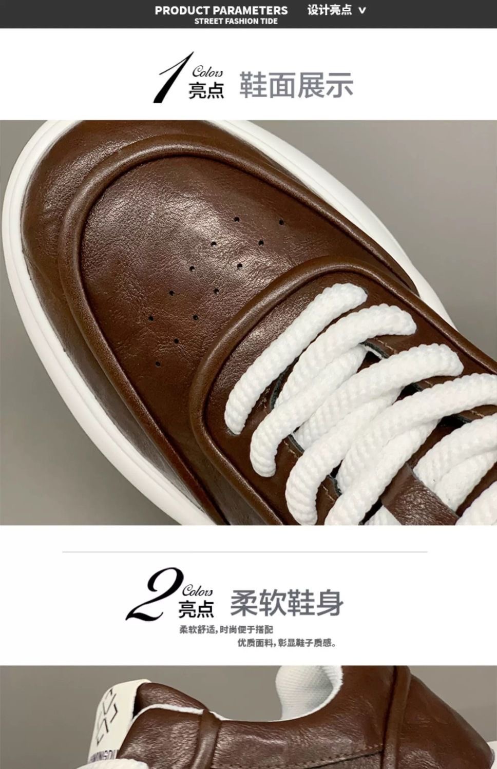 남자 신발 2025 봄 새로운 두꺼운 유일한 미끄럼 방지 소프트 솔 운동화 캐주얼 가죽 솔리드 컬러 올 매치 대외 무역 증가