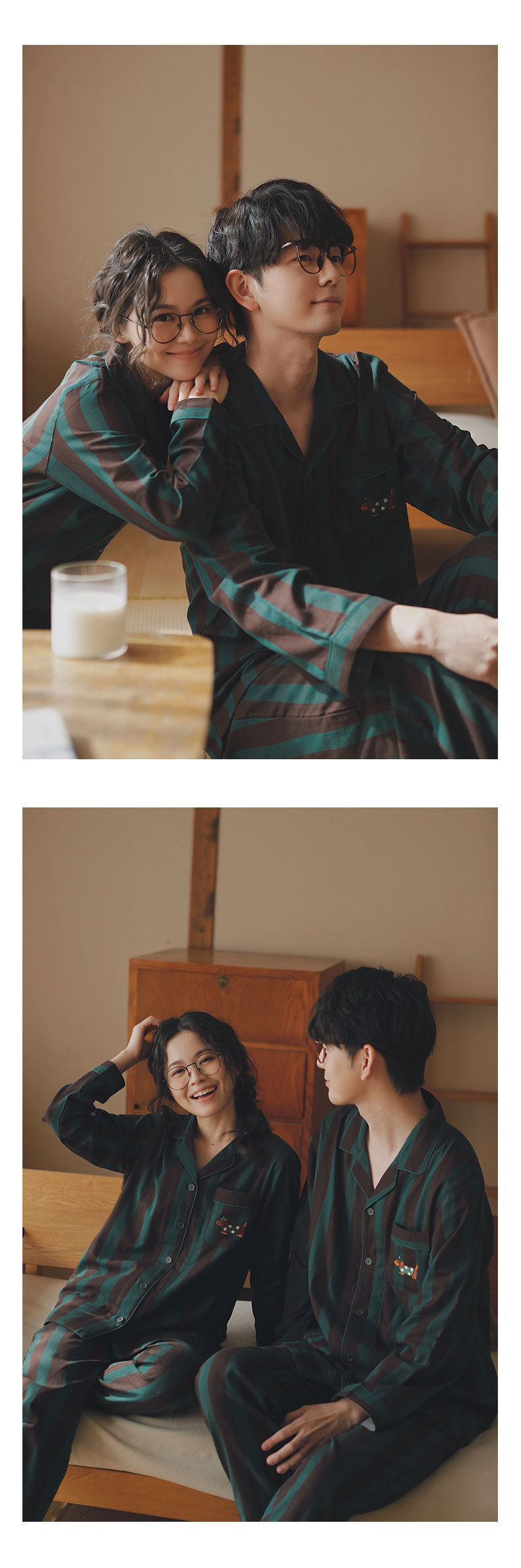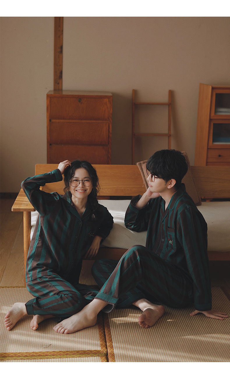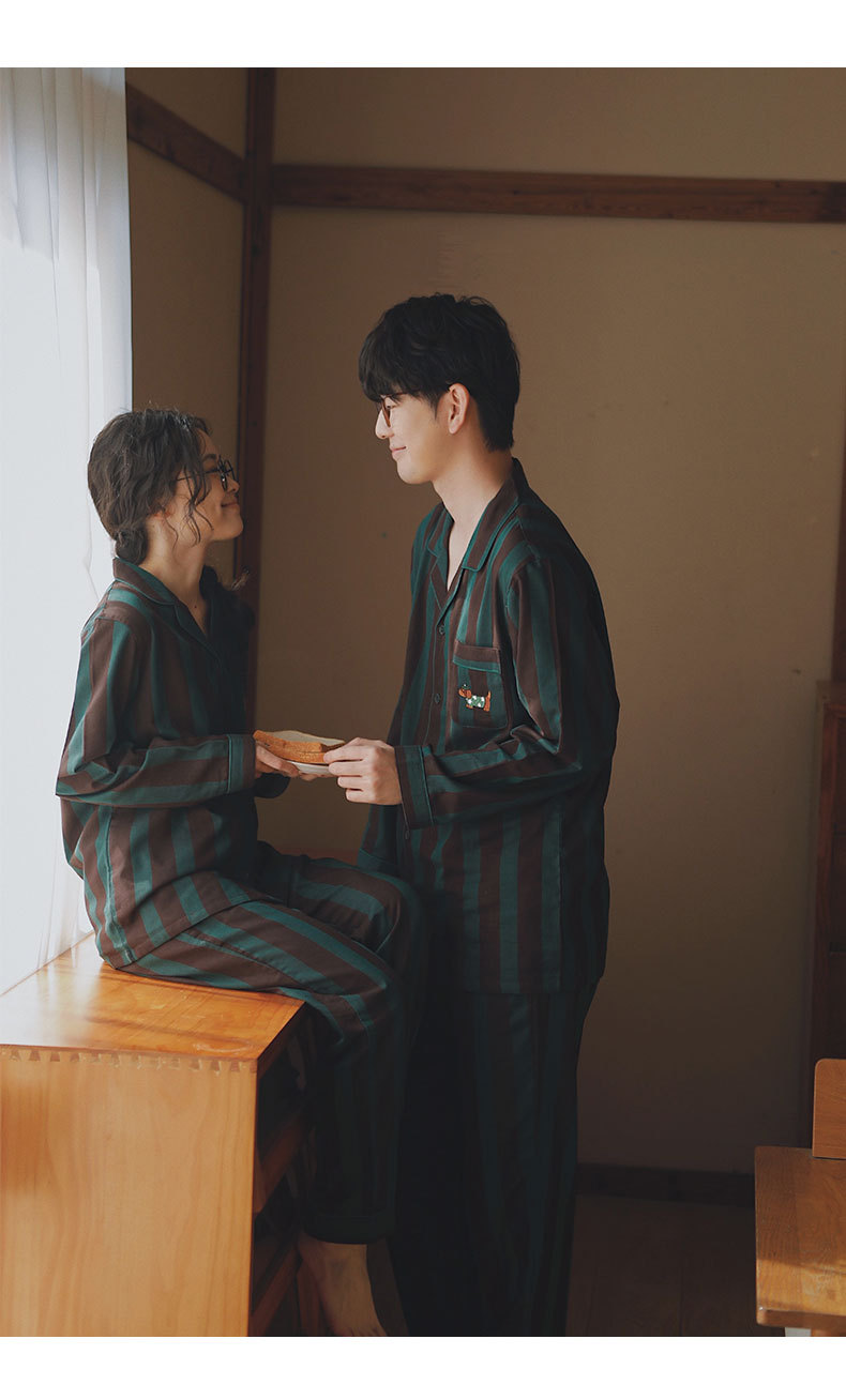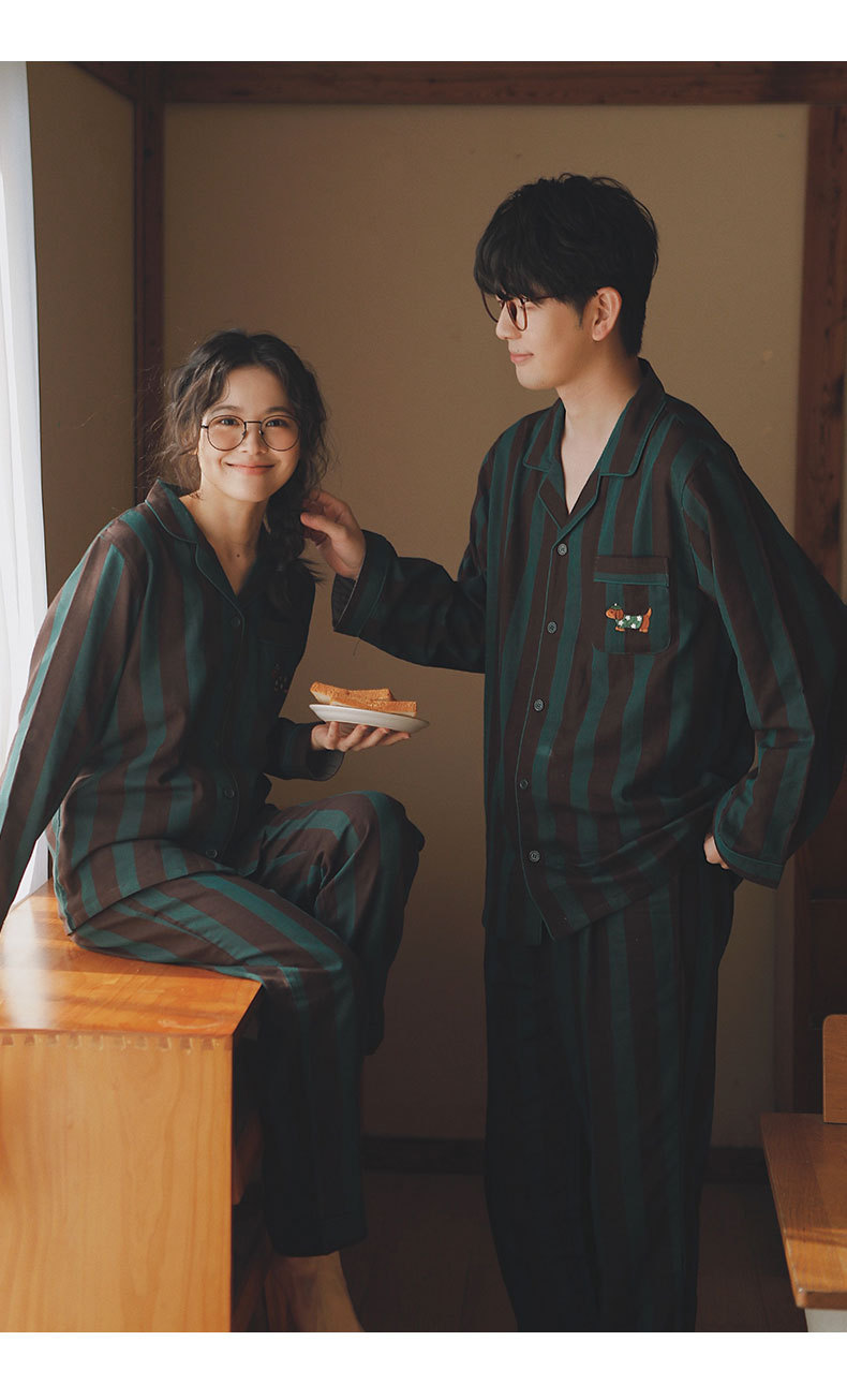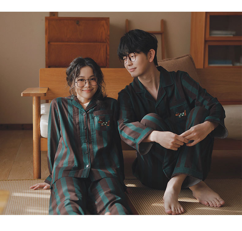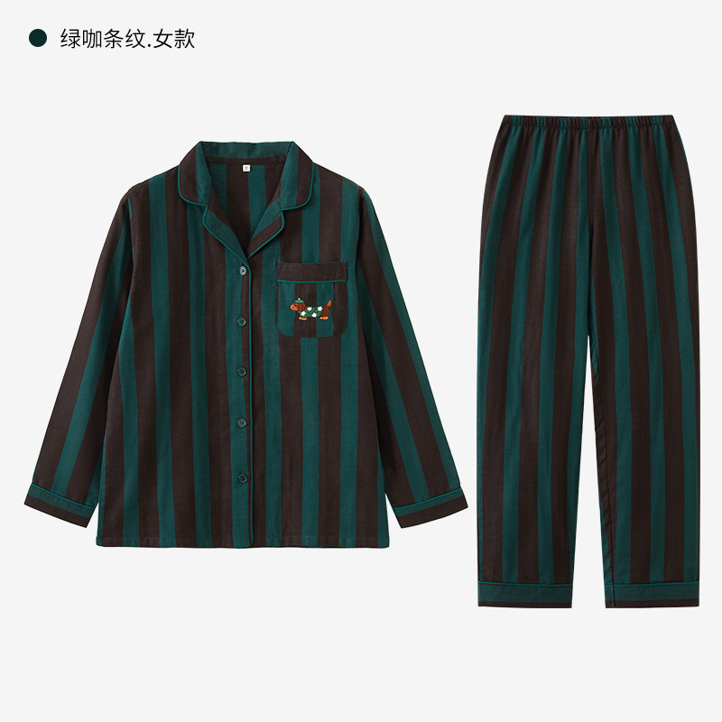 거의 72/77-비스트 파자마 숙녀 봄과 가을 긴 소매 커플 세트 코튼 거즈 스트라이프 홈 웨어 남성스토어 가기