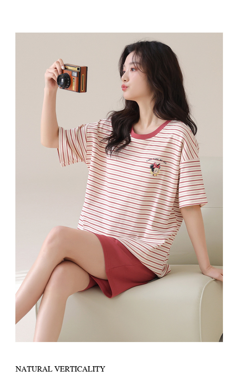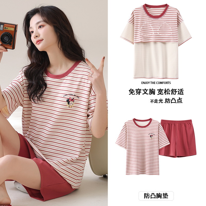 CVC6040 가슴 패드 잠옷을 입은 반팔 반바지 여성의 여름 만화 캐주얼 크루 넥 풀오버 여름 겉옷 소녀스토어 가기