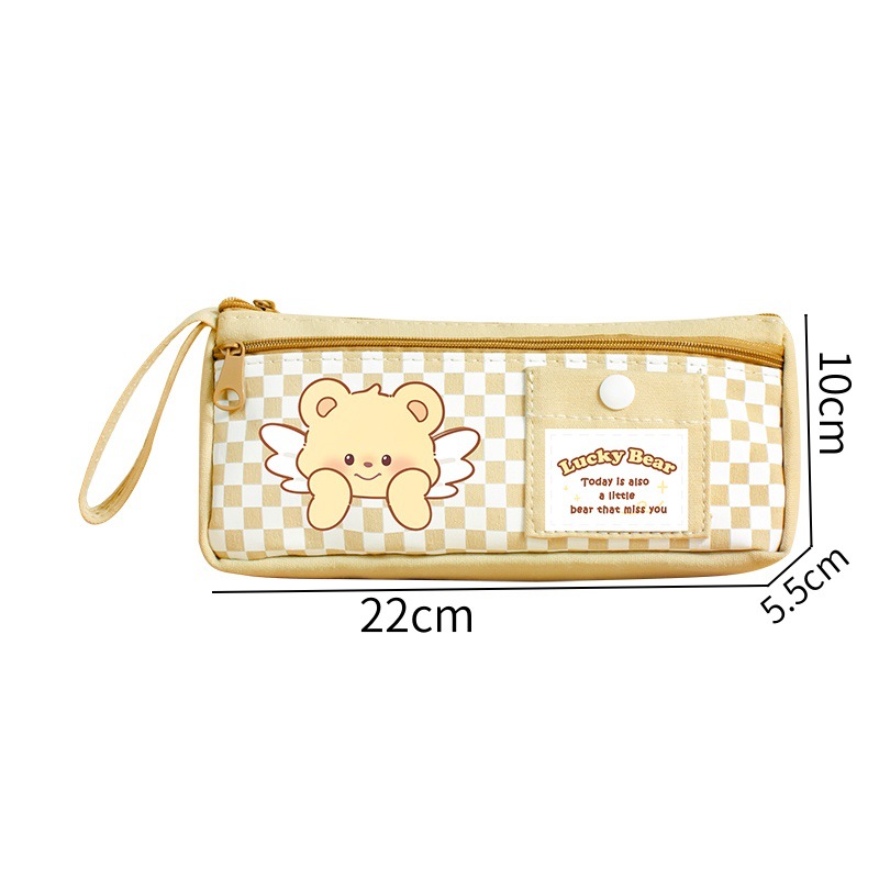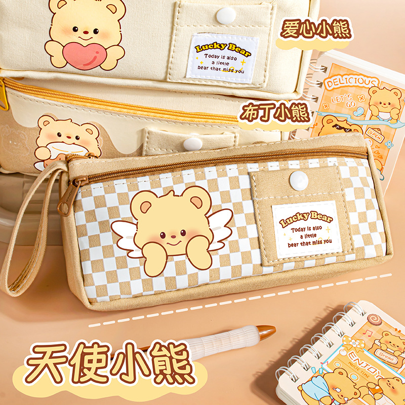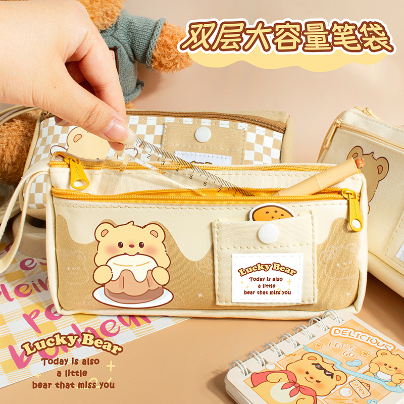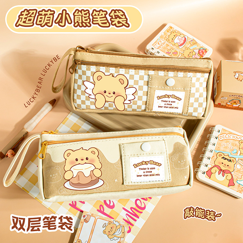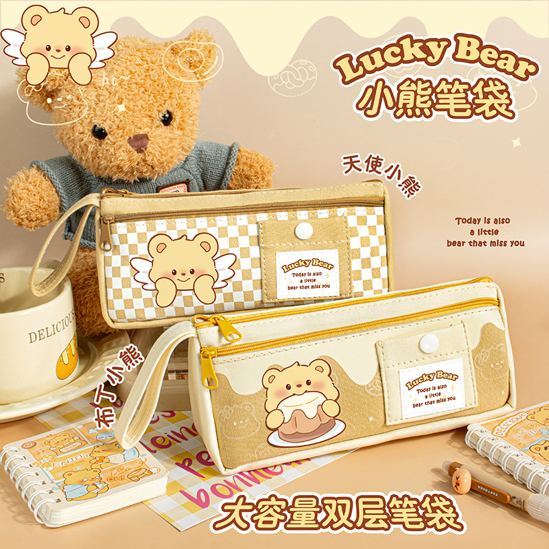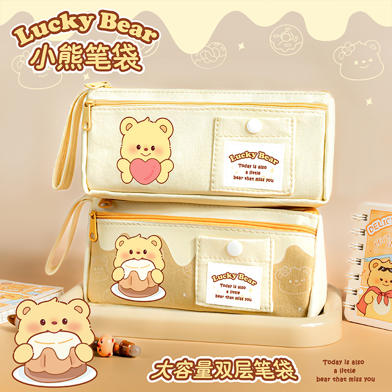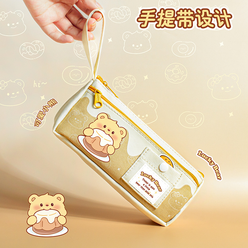 치즈 베어 연필 가방 높은 색상 값 귀여운 문구 가방 문구 상자 중학생 및 초등학생을위한 대용량 크리에이티브 연필 상자