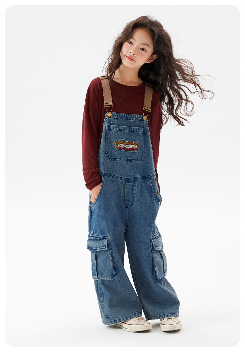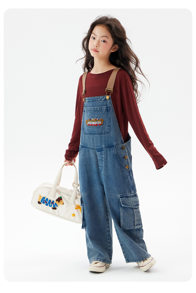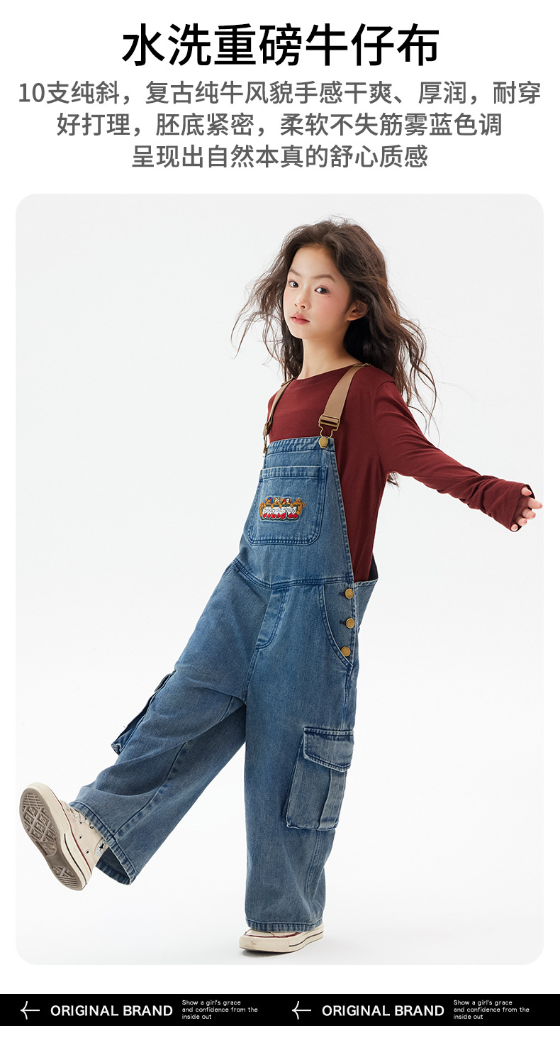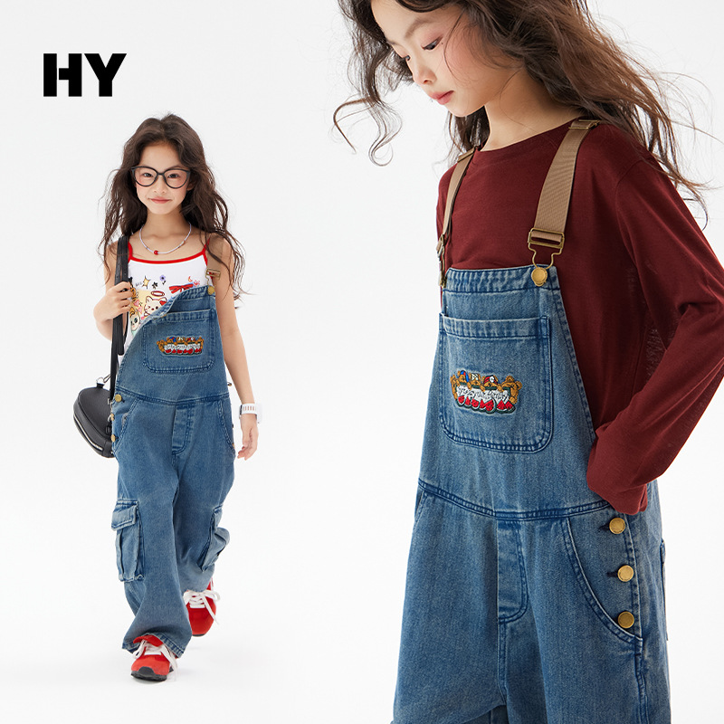 여아 데님 멜빵바지 2025 가을 신상 중대형 아동 레트로 와이드 팬츠 어린이 한국 스타일 패션 바지스토어 가기