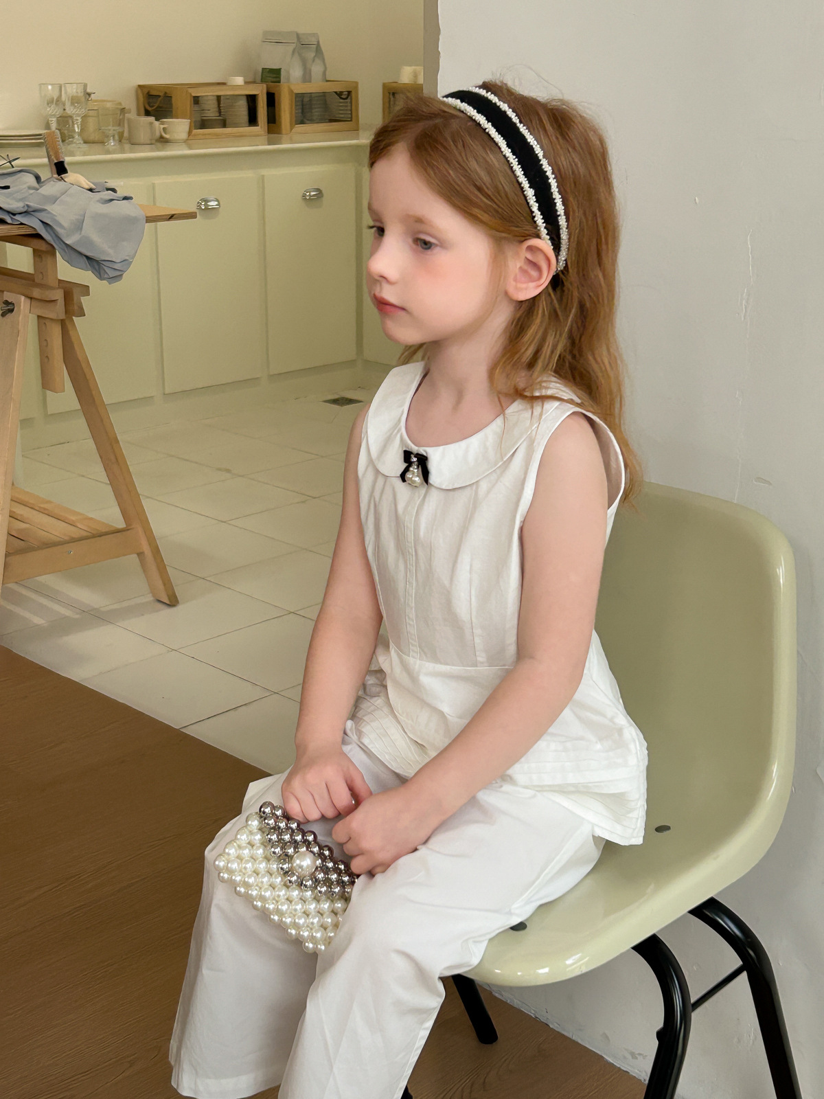 25 봄과 여름 새로운 여학생 학교 스타일 세트 어린이 패션 조끼 캐주얼 바지 흰색 투피스 세트스토어 가기