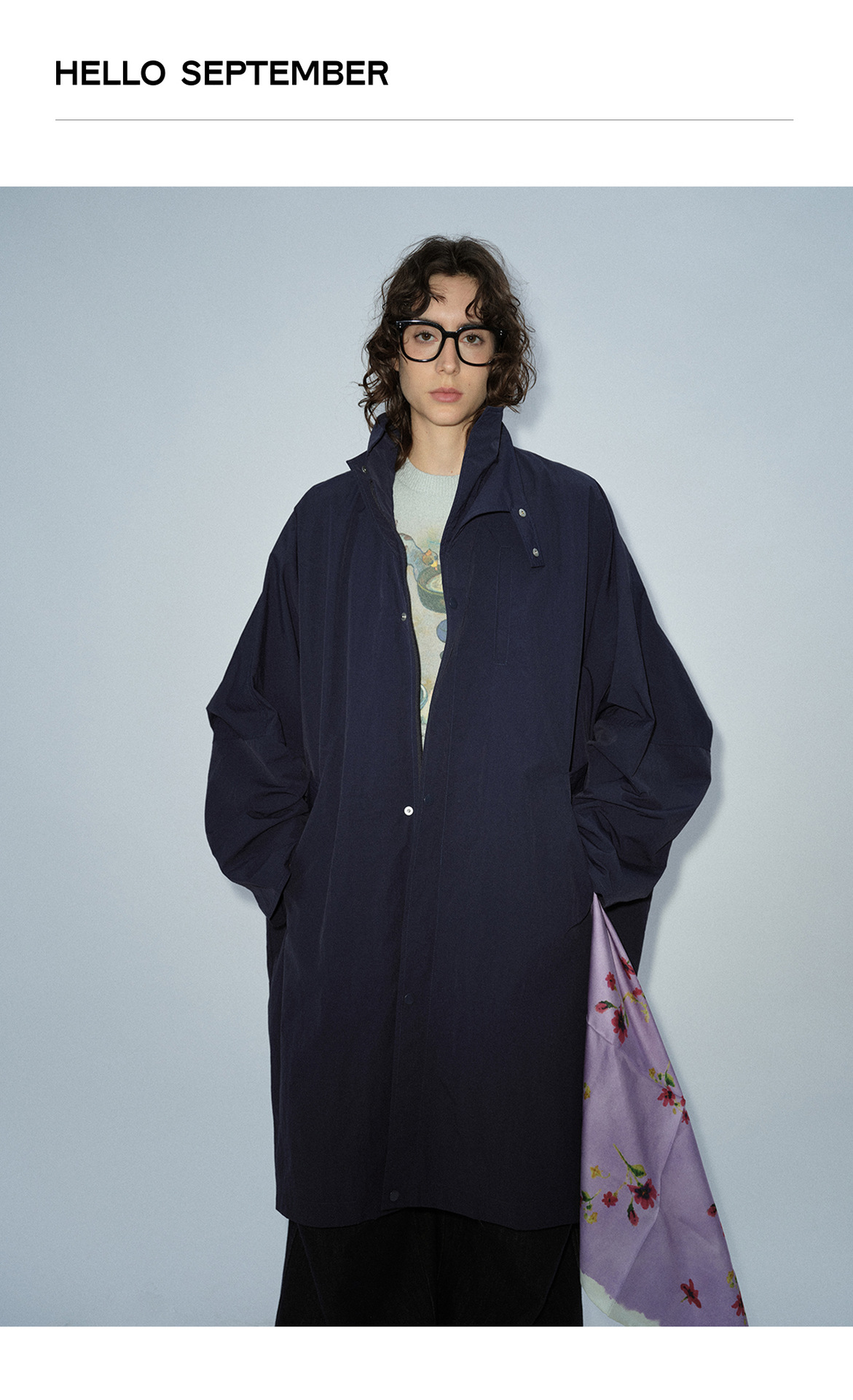 [시간 방문] 새로운 캐주얼 루즈 대형 확장 긴 굴뚝 칼라 주름 방지 경량 긴팔 윈드 브레이커 재킷 V8279