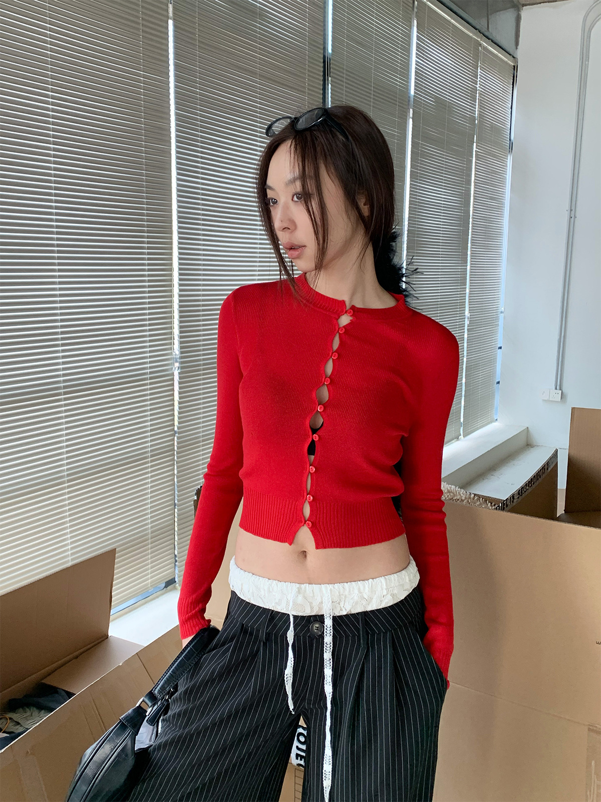 도로시 멀티 컬러 한국 레벨 미적 단일 브레스트 할로우 니트 카디건 짧은 슬림 핏 스웨터스토어 가기