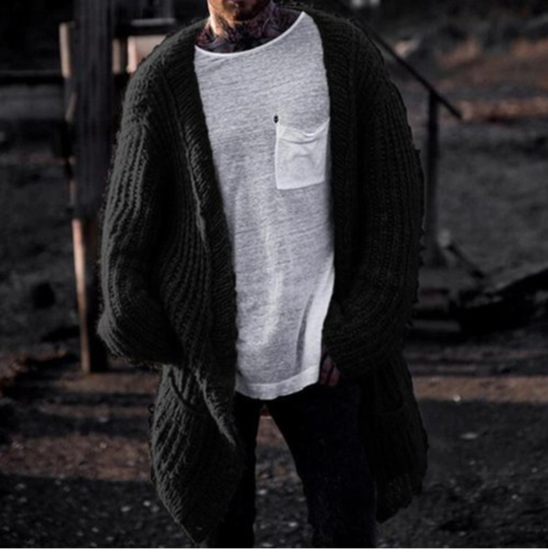 아마존 대외 무역 남자의 가을과 겨울 새로운 긴 스웨터 남자의 두꺼운 바늘 카디건 스웨터 코트 SY0156