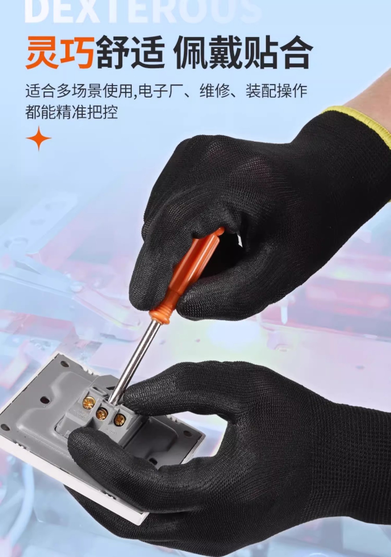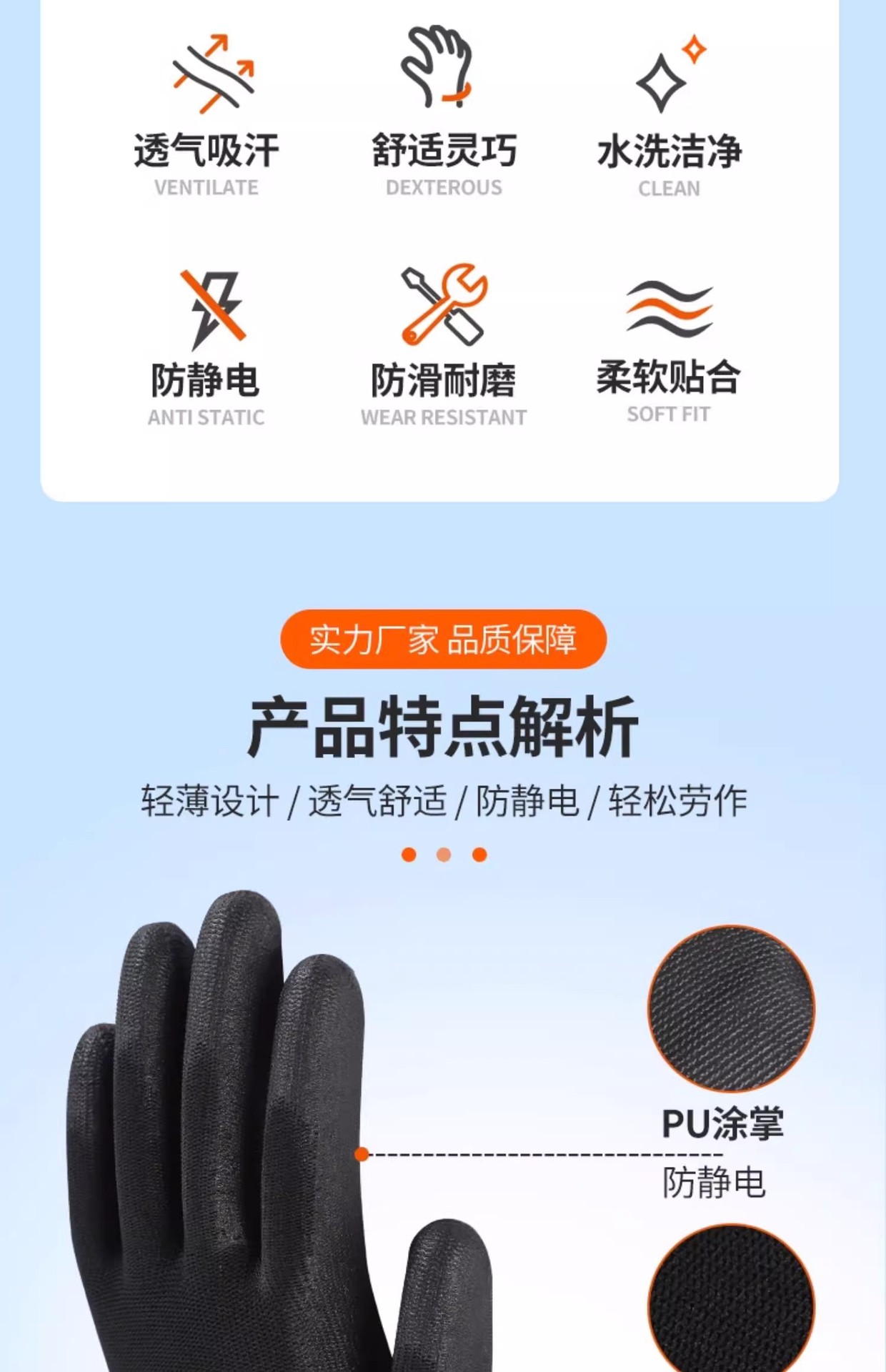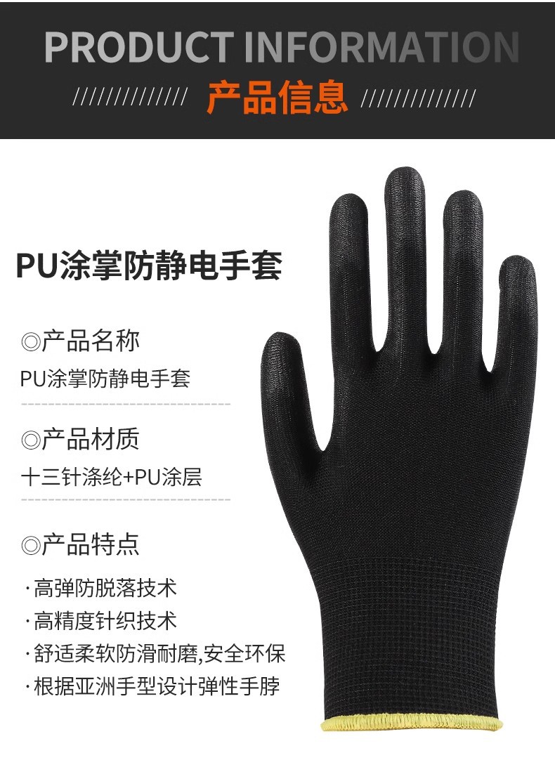 블랙 PU 나일론 장갑 노동 보호 통기성 코팅 팜 미끄럼 방지 스토리지 어셈블리 가벼운 산업 작업 남성과 여성 여름 얇은스토어 가기