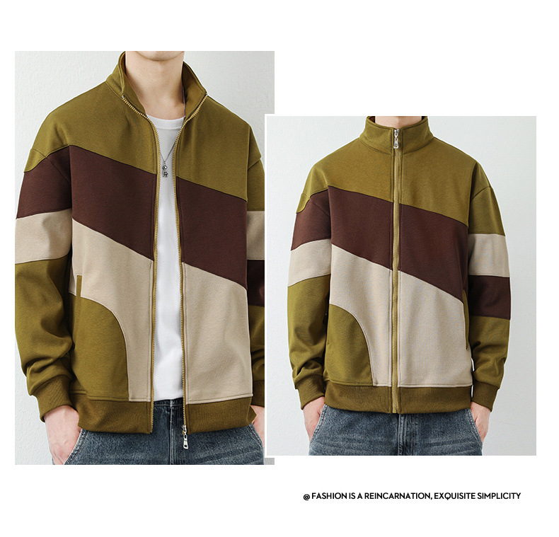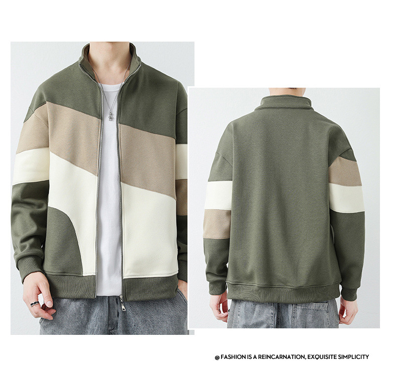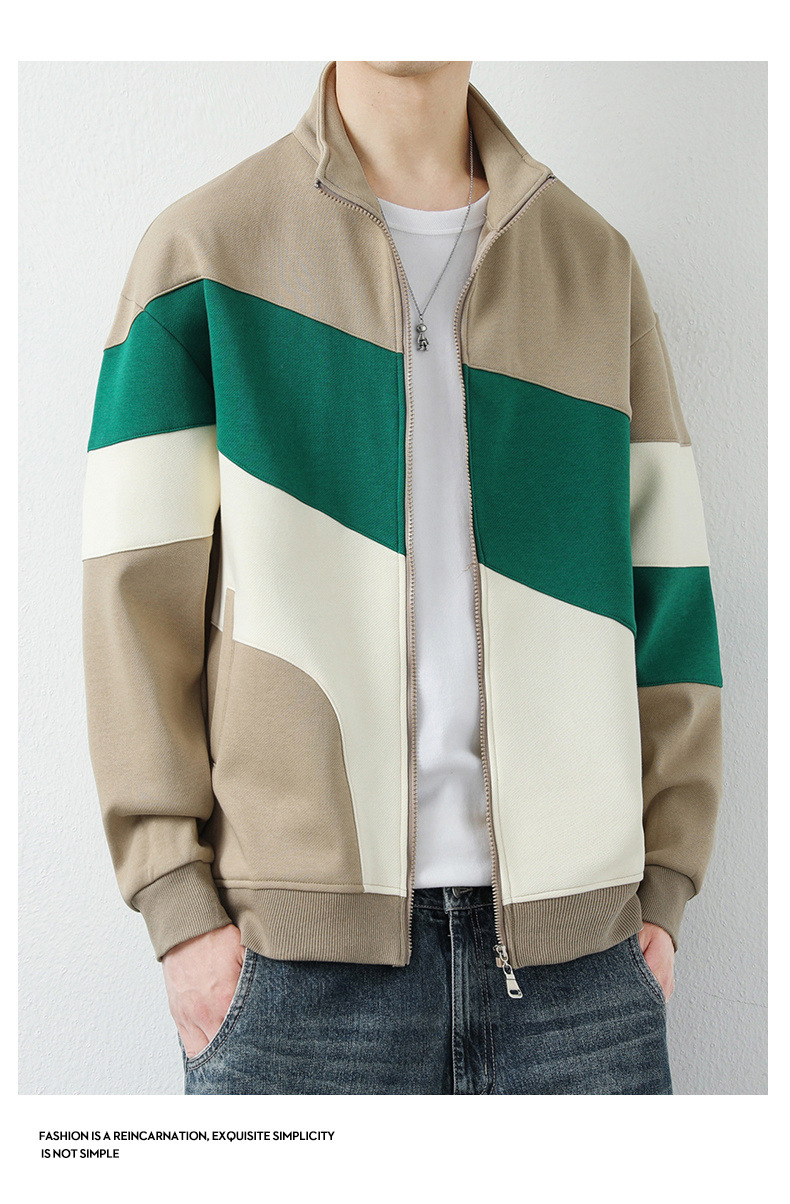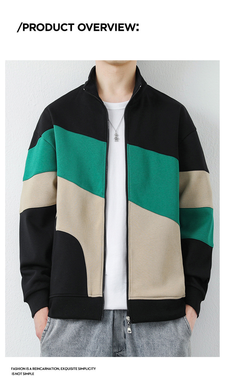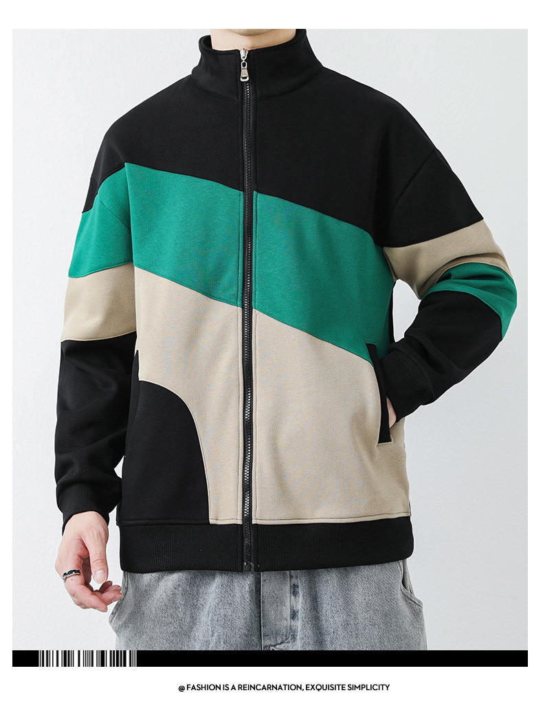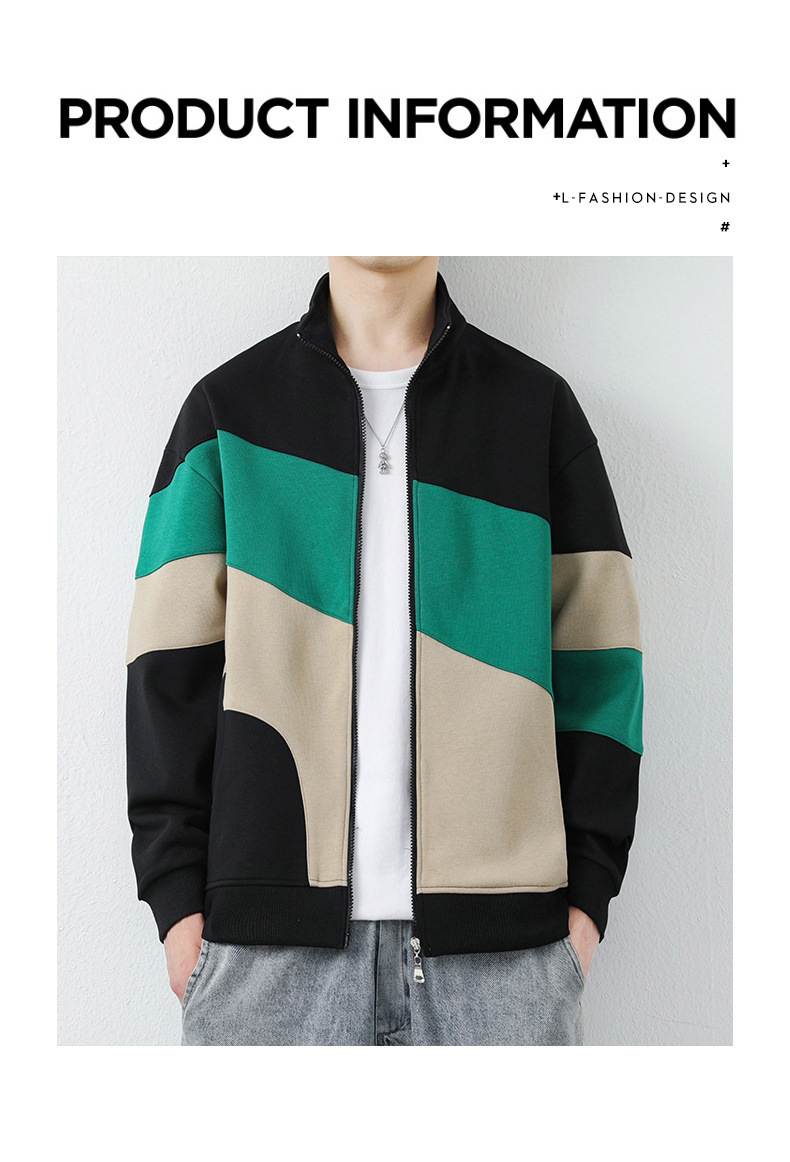 컬러 매칭 카디건 스웨터 남성 스탠드 칼라 스포츠 레저 패션 트렌드 십대 카디건 코트 스티칭 컬러 대비 패션