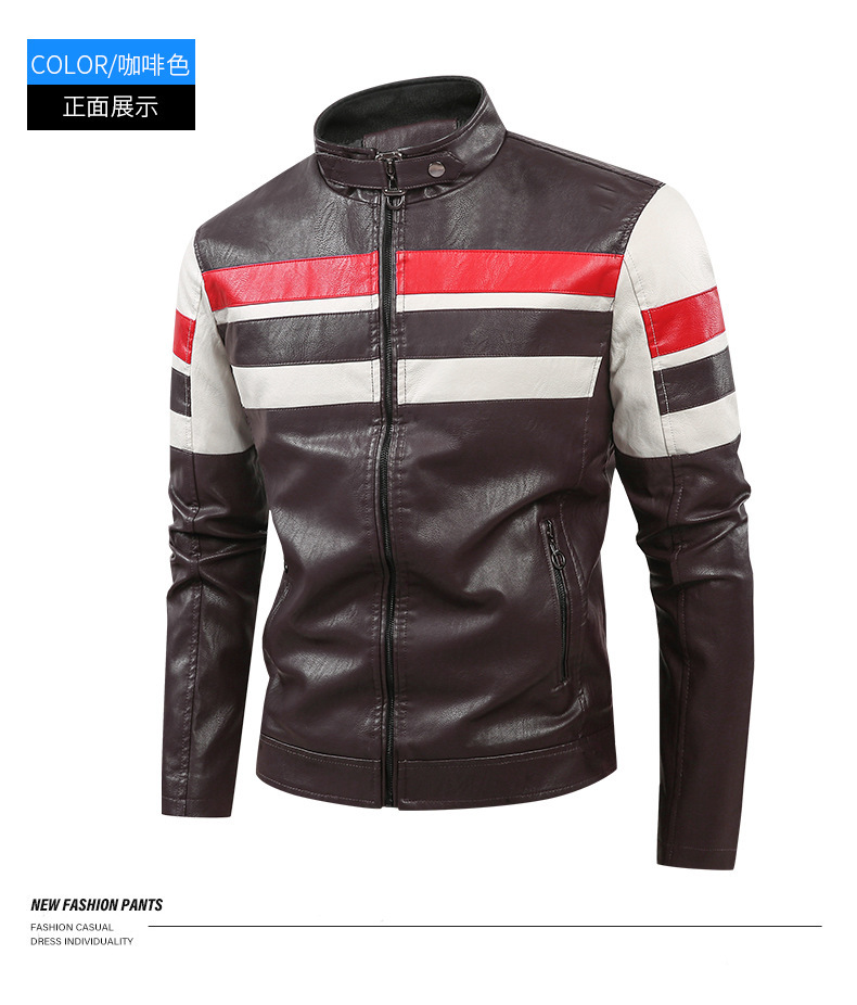 2025 남성 새로운 컬러 삽입 패션 영국 레저 기관차 PU 가죽 코트 남자의 대외 무역 국경 공급스토어 가기