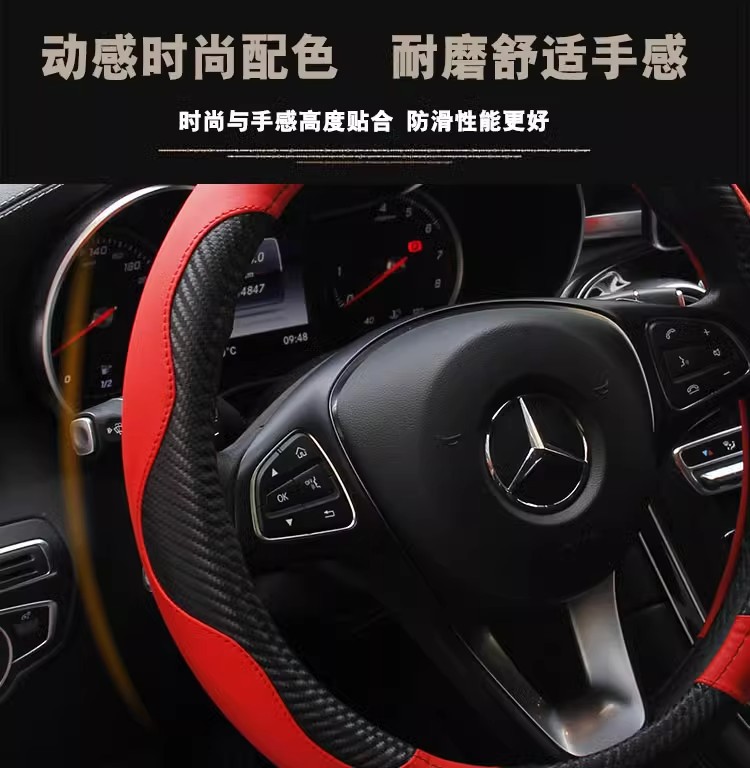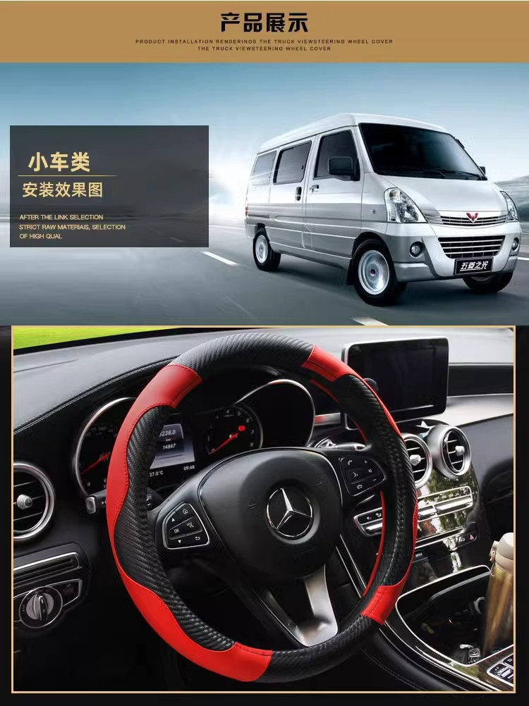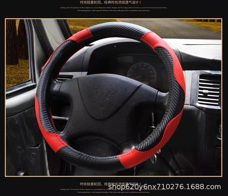 새로운 트럭 트럭 버스 밴 자동차 스티어링 휠 커버 공장 가격 직접 탄소 섬유 블랙 레드 스포츠 핸들 커버