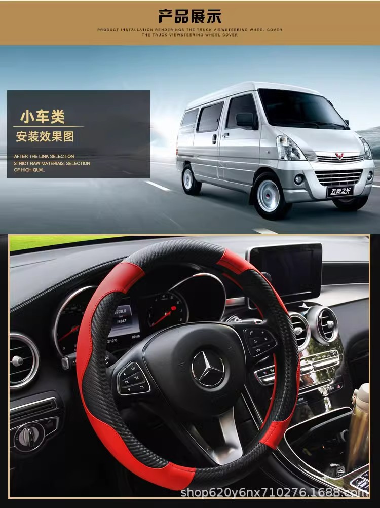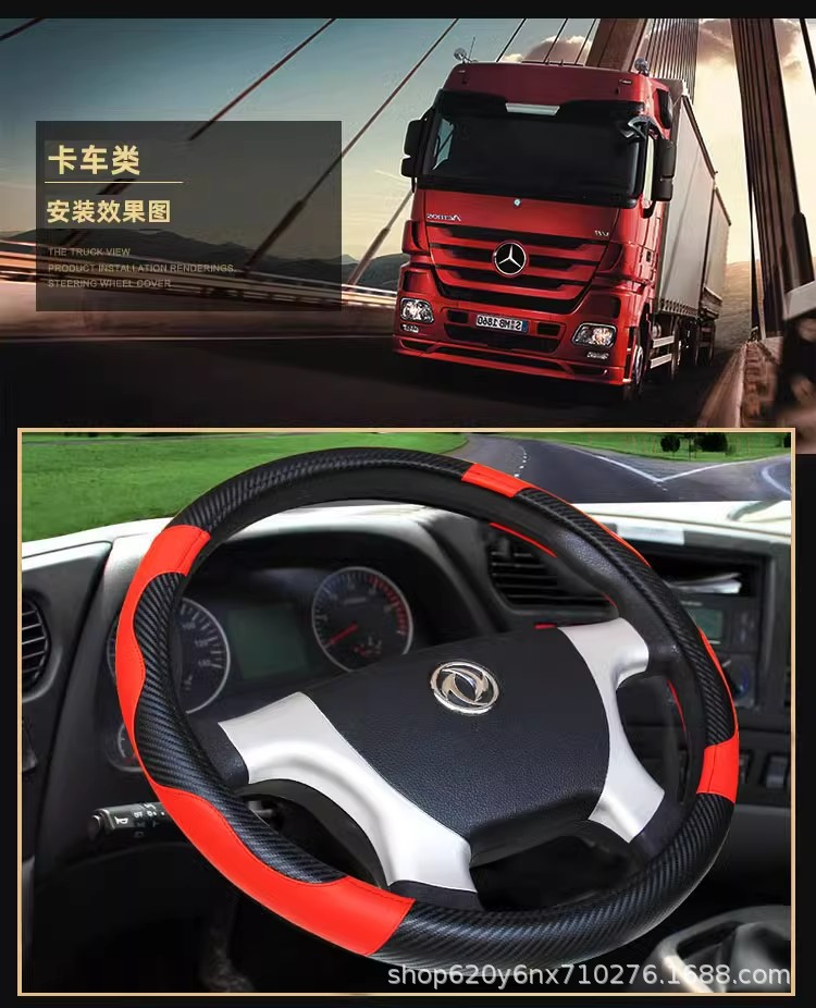 새로운 트럭 트럭 버스 밴 자동차 스티어링 휠 커버 공장 가격 직접 탄소 섬유 블랙 레드 스포츠 핸들 커버스토어 가기